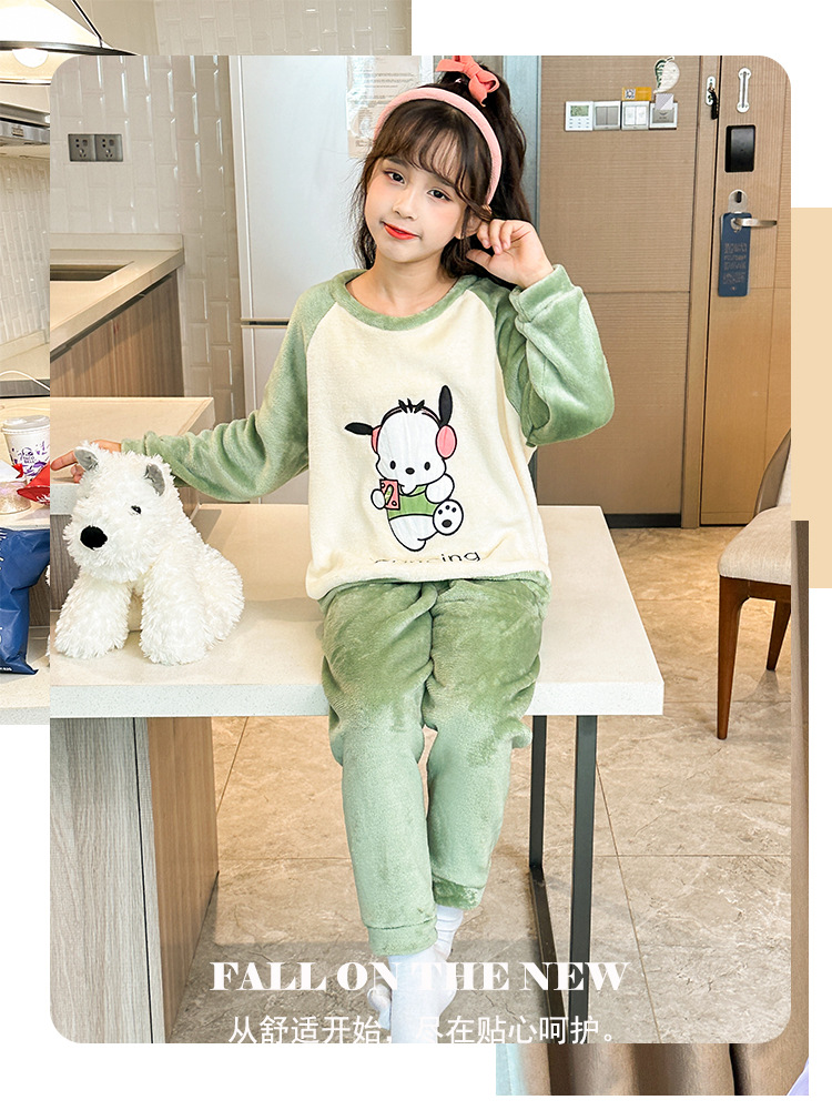 어린이 잠옷 가을 겨울 소년 산호 양털 소년 플란넬 얇은 중형 및 대형 어린이 팬더 따뜻한 집 옷 겨울