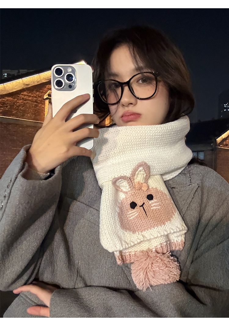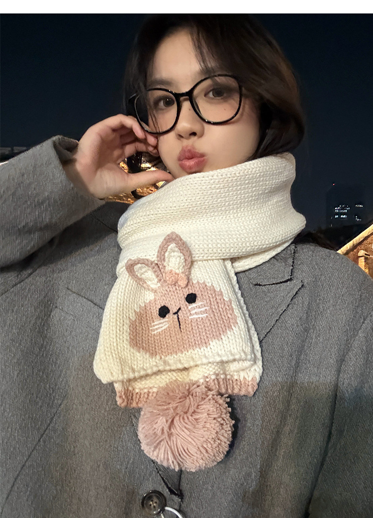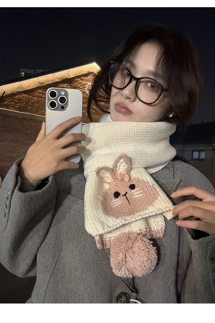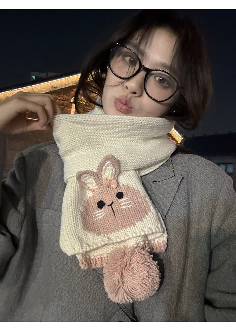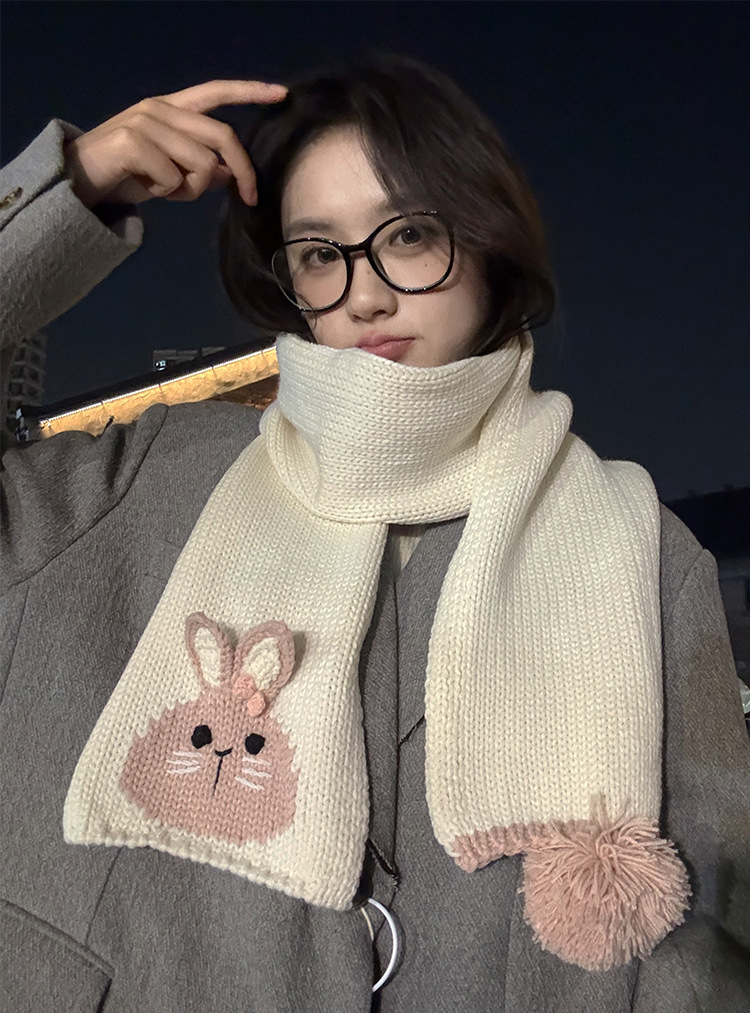 일본식 만화 귀여운 토끼 니트 울 스카프 여성 가을 겨울 한국 스타일 올 매치 따뜻한 모방 캐시미어 스카프 패션스토어 가기