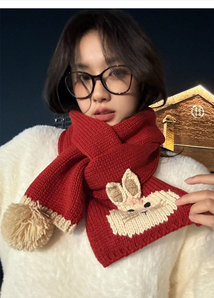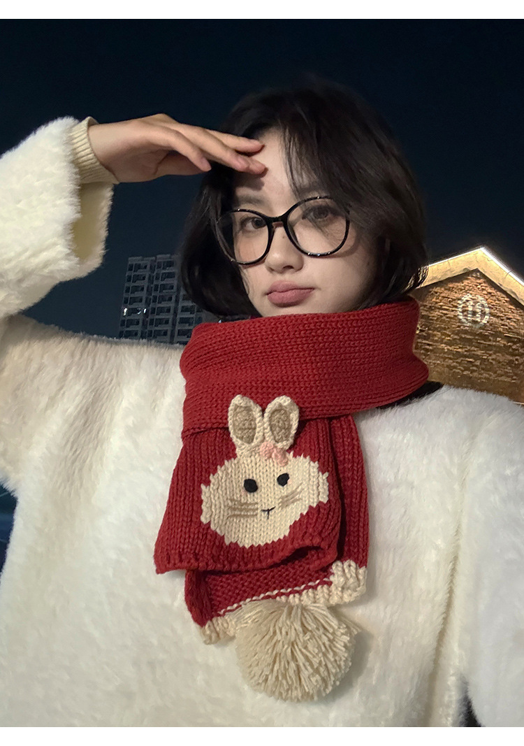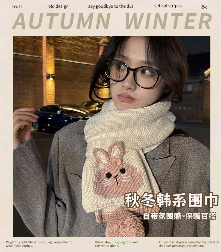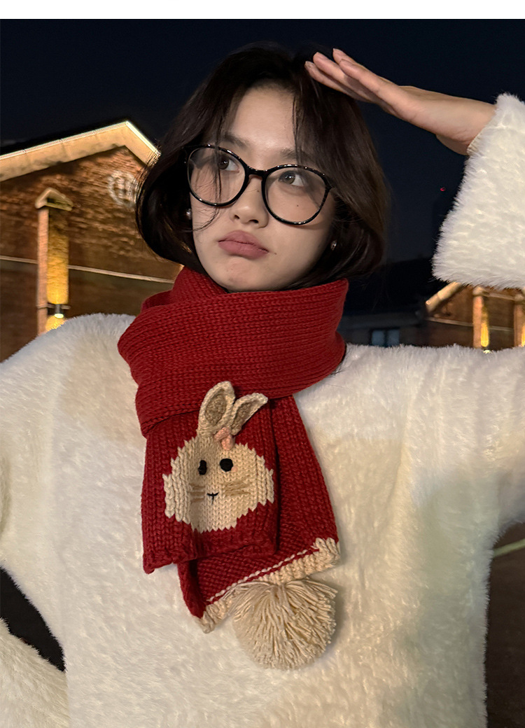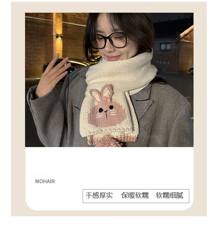 일본식 만화 귀여운 토끼 니트 울 스카프 여성 가을 겨울 한국 스타일 올 매치 따뜻한 모방 캐시미어 스카프 패션스토어 가기