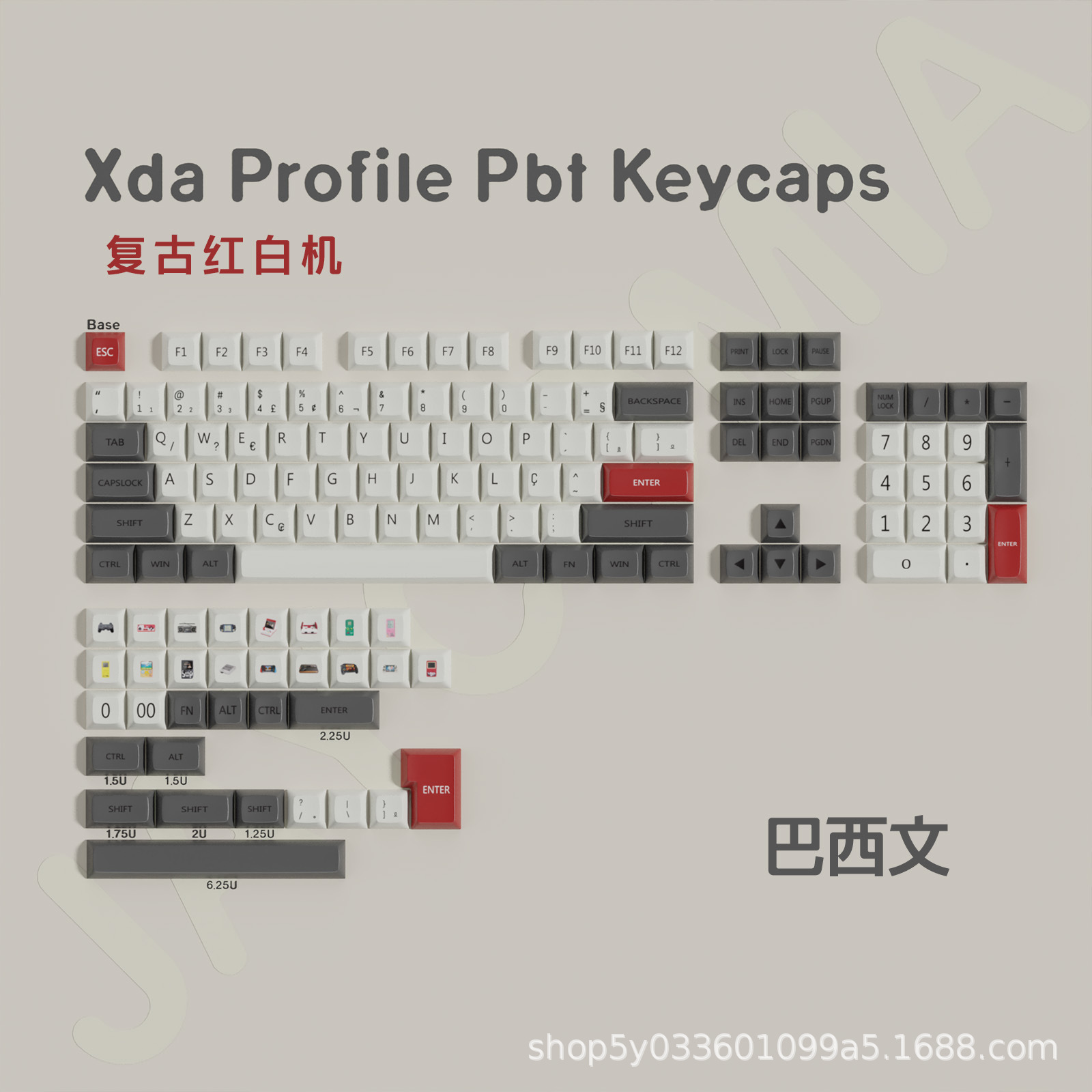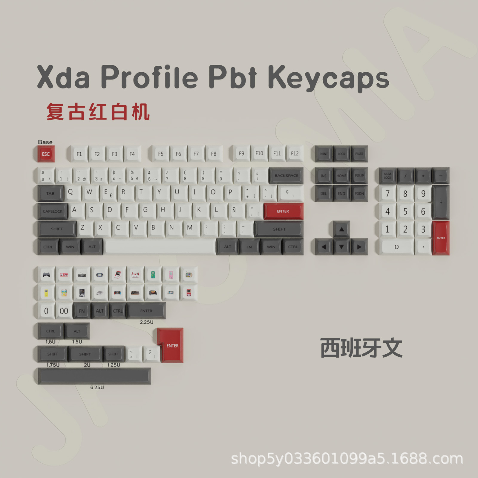 Keycap XDA 복고풍 빨간색과 흰색 게임 콘솔 PBT 5면 승화 기계식 키보드 캡에는 다양한 언어 버전이 포함되어 있습니다.