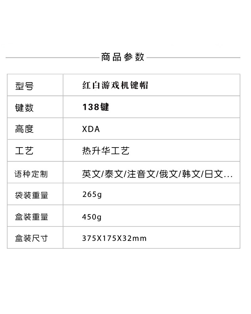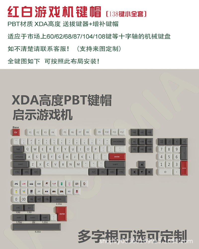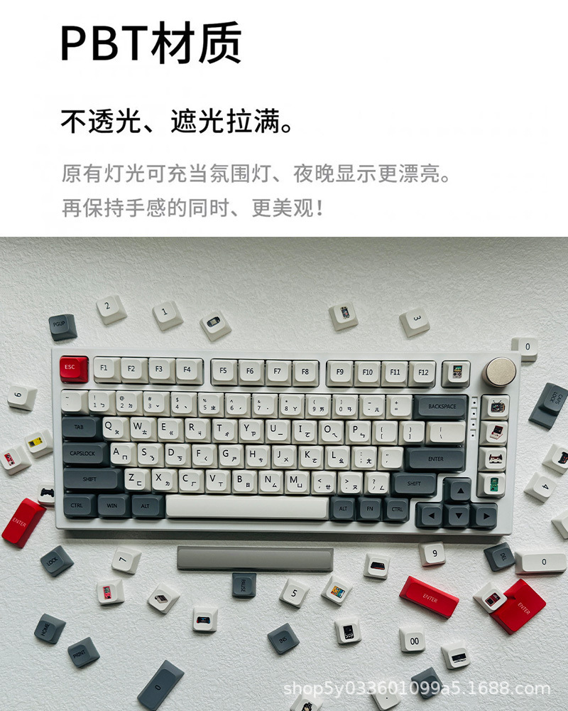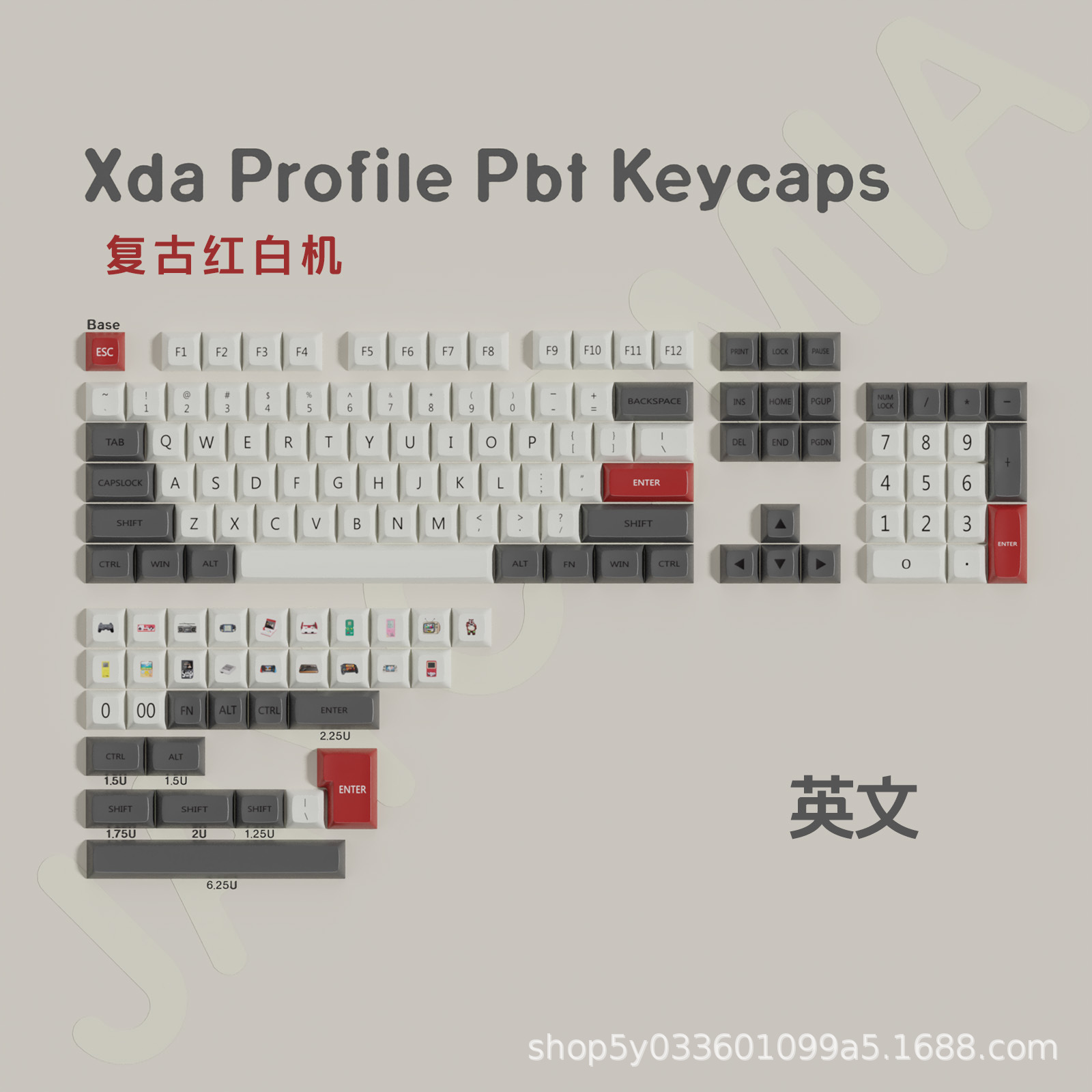 Keycap XDA 복고풍 빨간색과 흰색 게임 콘솔 PBT 5면 승화 기계식 키보드 캡에는 다양한 언어 버전이 포함되어 있습니다.스토어 가기