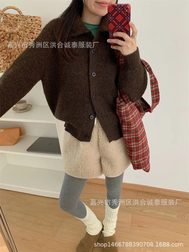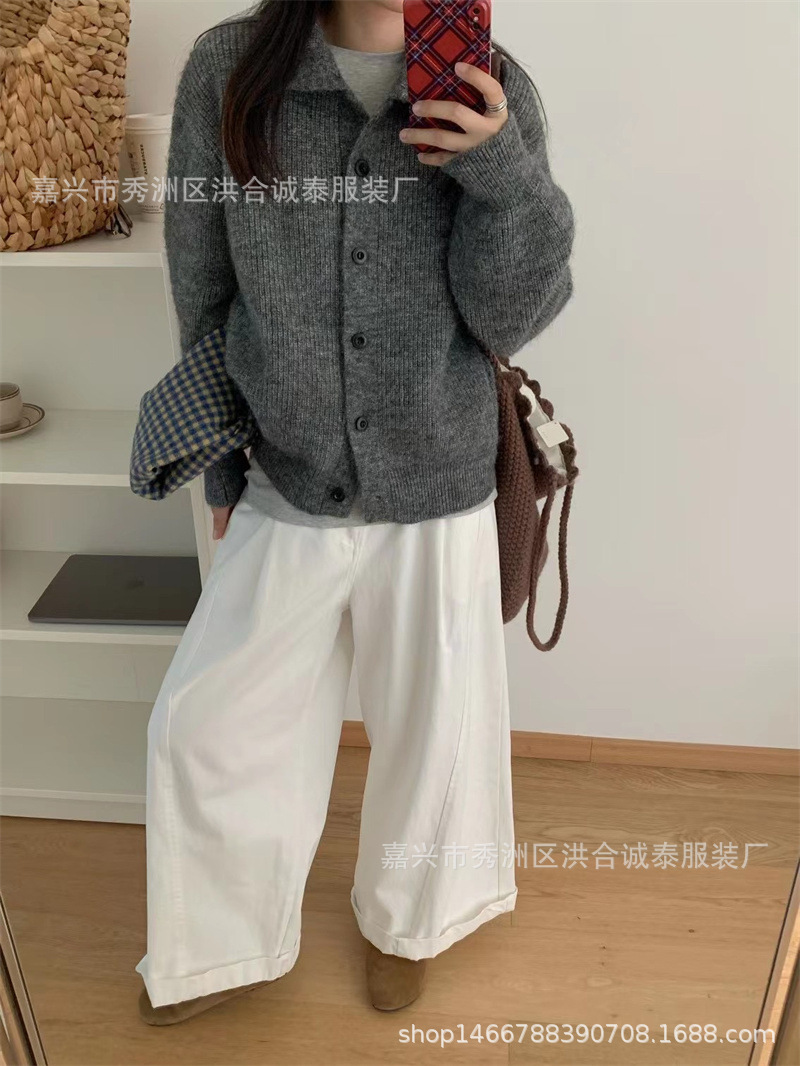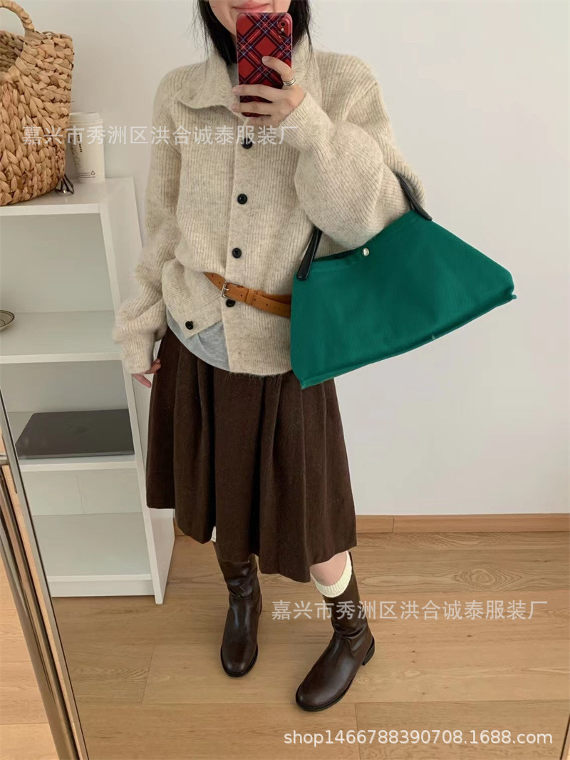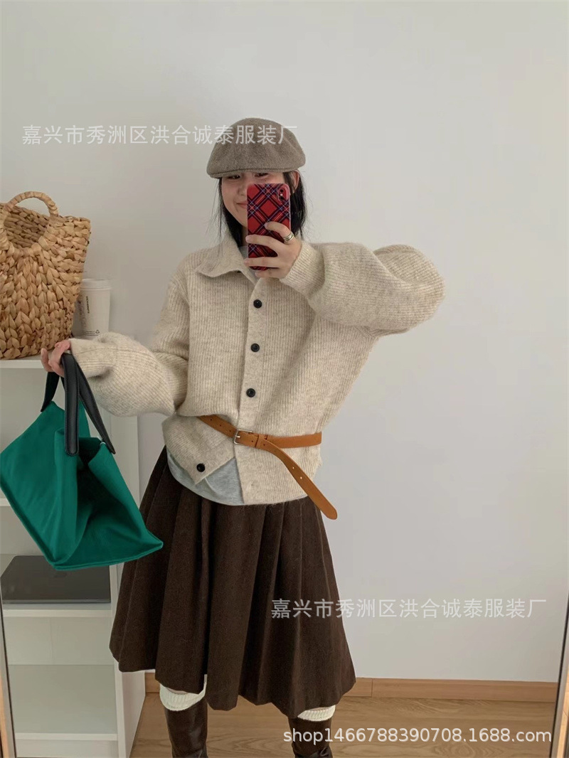 设计感撞色翻领毛衣外套女秋冬新款韩系学院风高级感宽松针织开衫