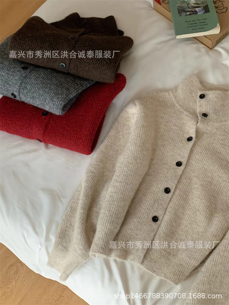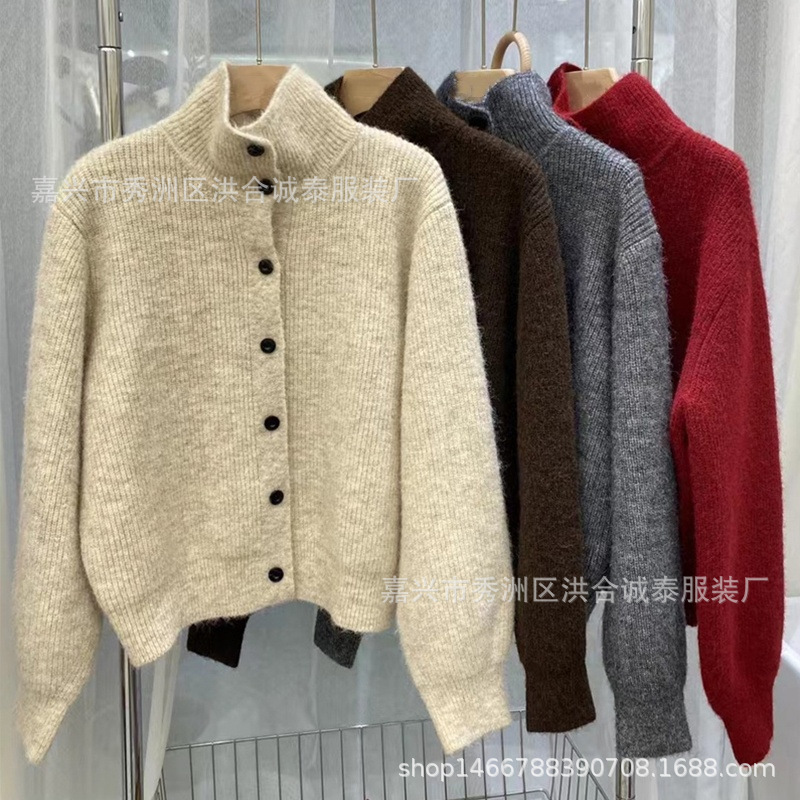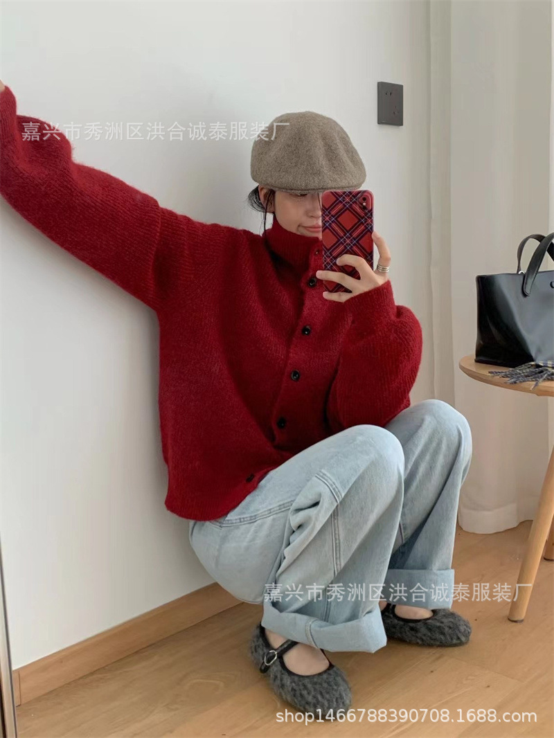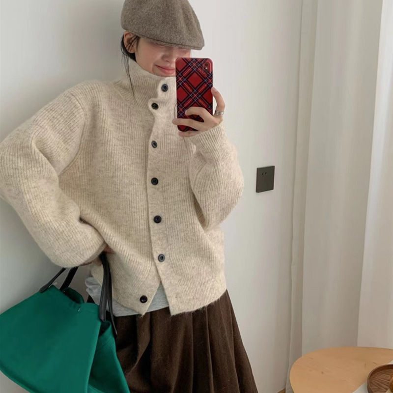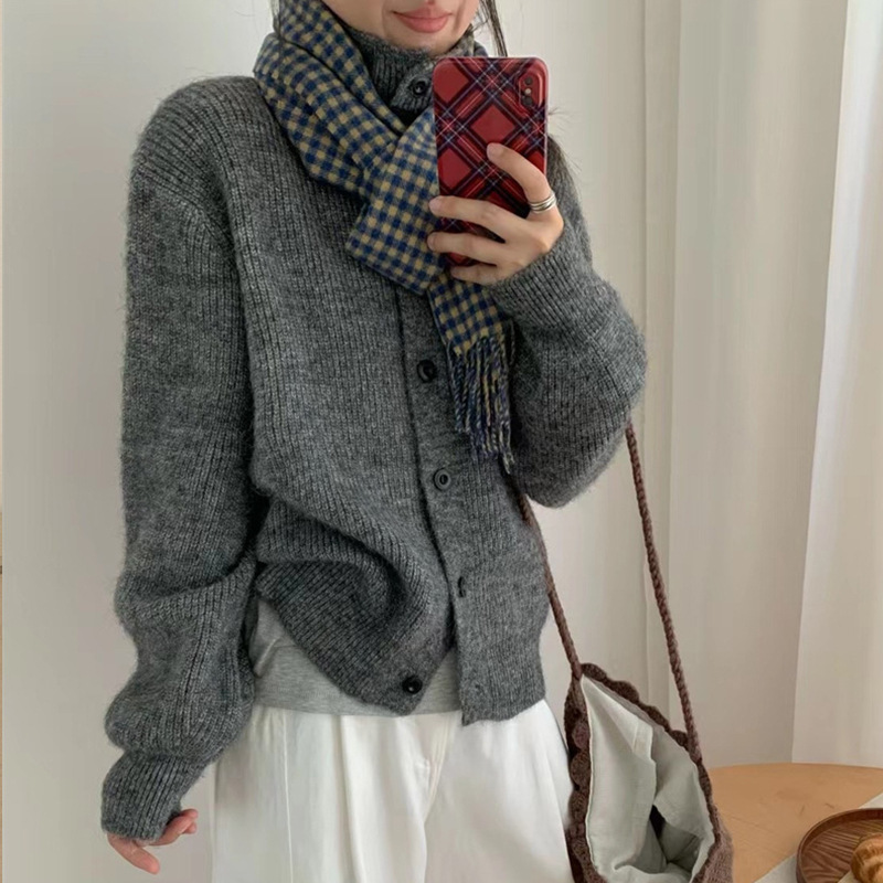 프렌치 레트로 그레이 하이넥 스웨터 재킷 여성용 2025 가을 겨울 신상 한국 스타일 루즈핏 레이지 스타일 니트 가디건스토어 가기