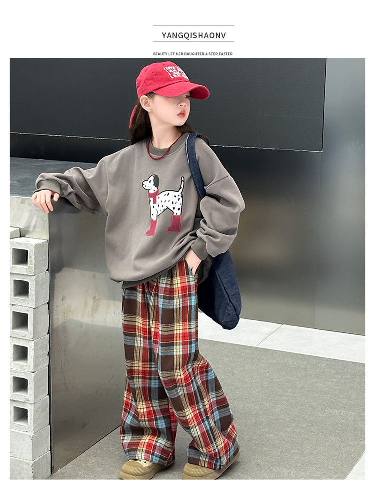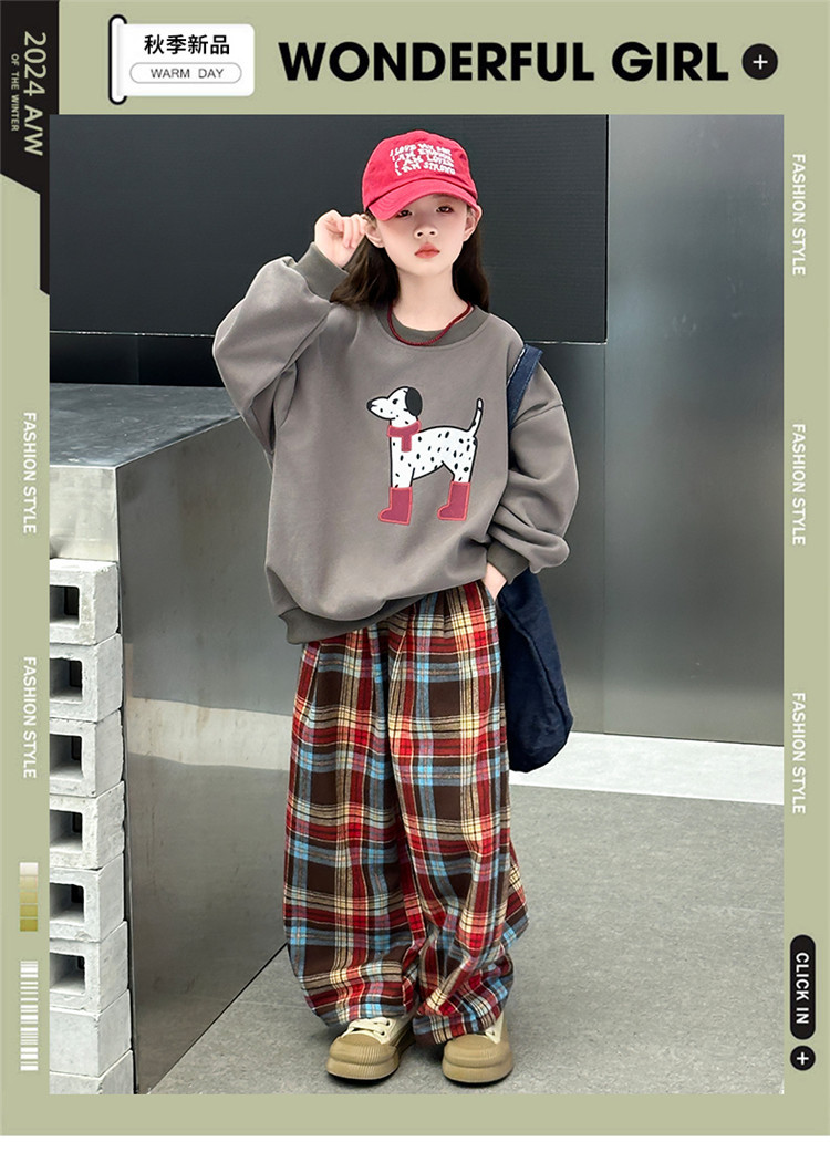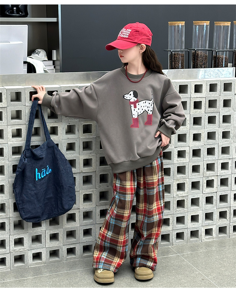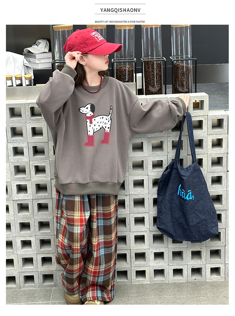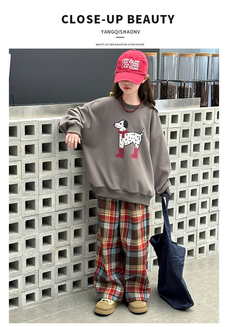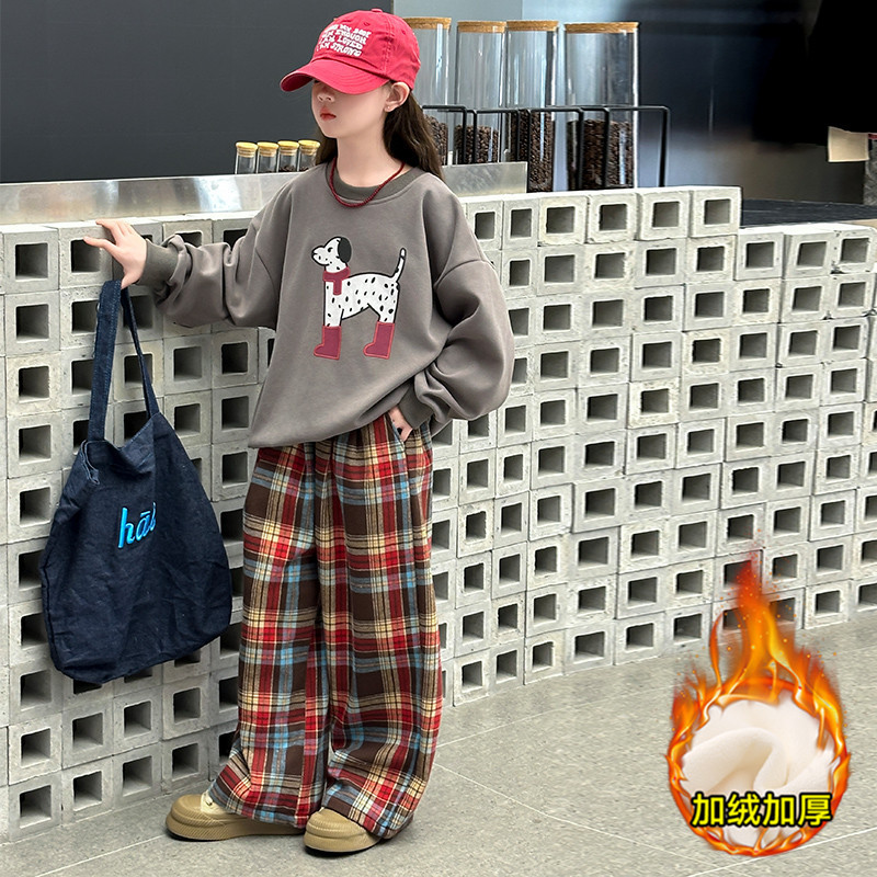 여자 기모 가을 겨울 세트 땀 2024 새로운 어린이 소녀 느슨한 최고 프렐리스 바지 2 피스 겨울 옷스토어 가기