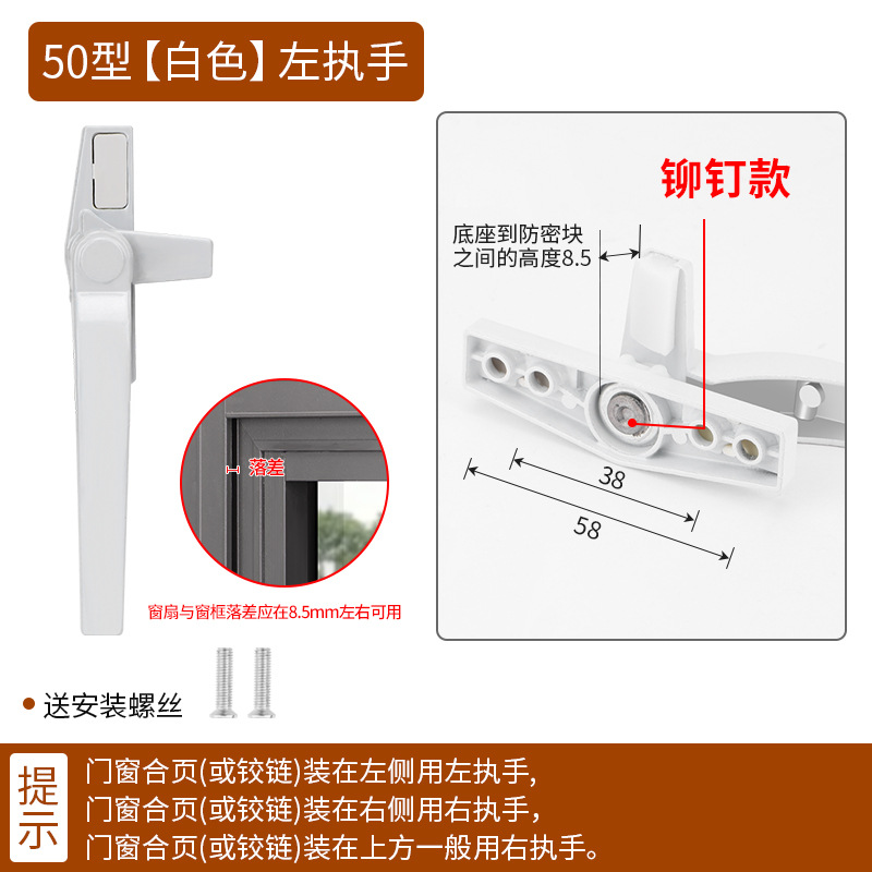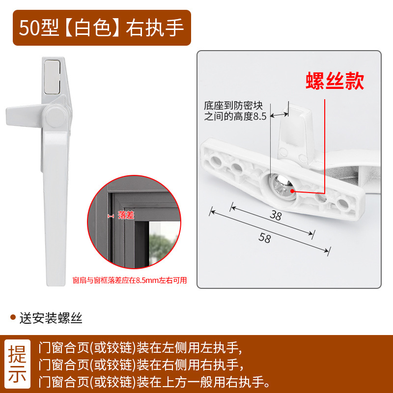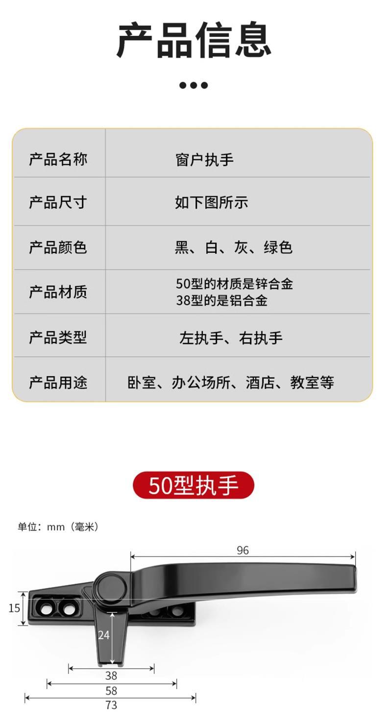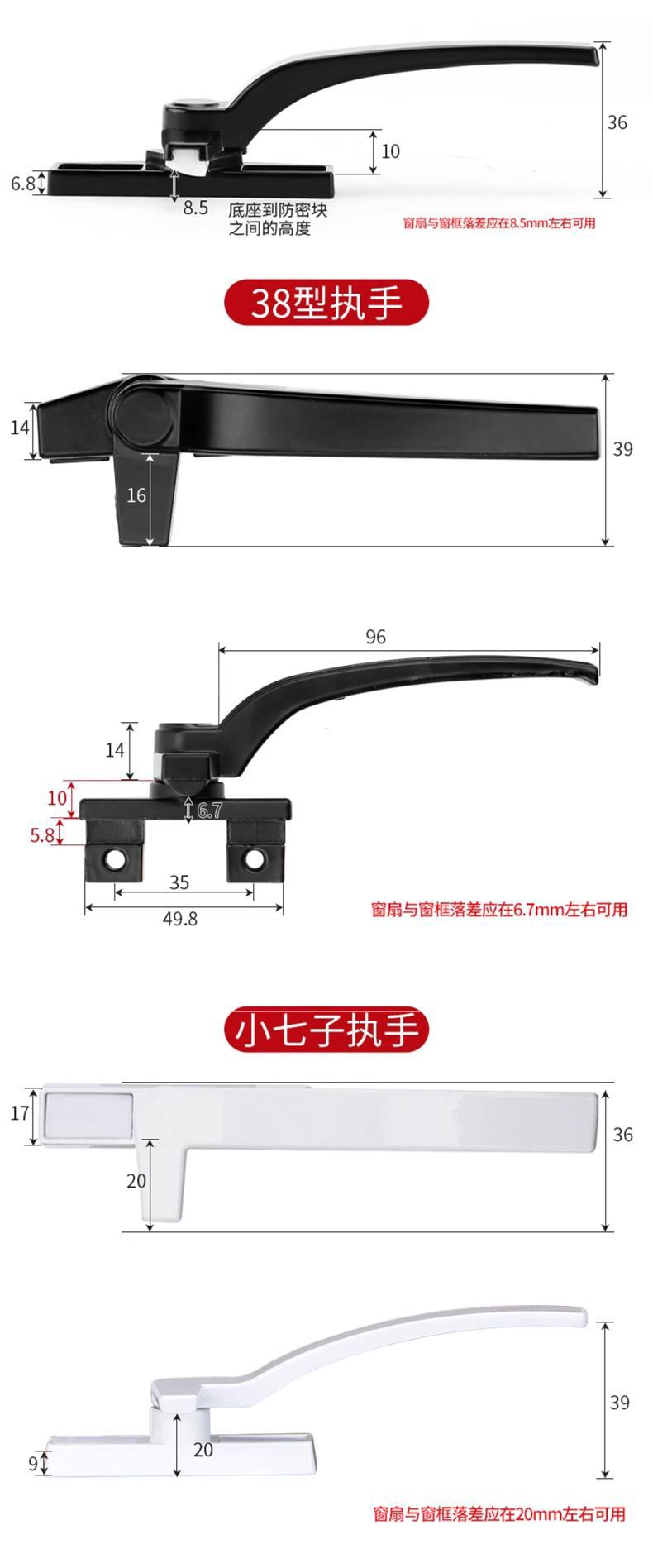 창 핸들 액세서리 푸시 창 핸들 50 알루미늄 합금 창 잠금 도어 및 창 7 자 핸들 기타