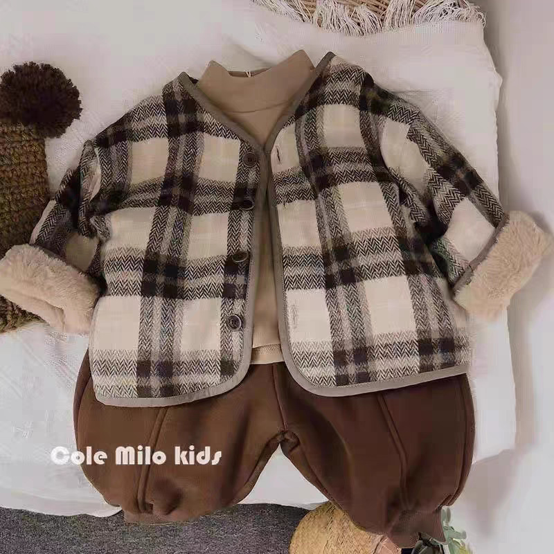 레몬 어린이 격자 무늬 양털 코트 한국 스타일 새로운 스타일 모직 가을과 겨울 코트 아기의 캐주얼 두꺼운 코튼 코트스토어 가기