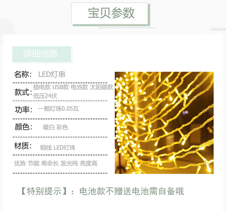 灯串100米以上长度是由50米公母接串联组成如200米是4条50米串联组成用一个插头