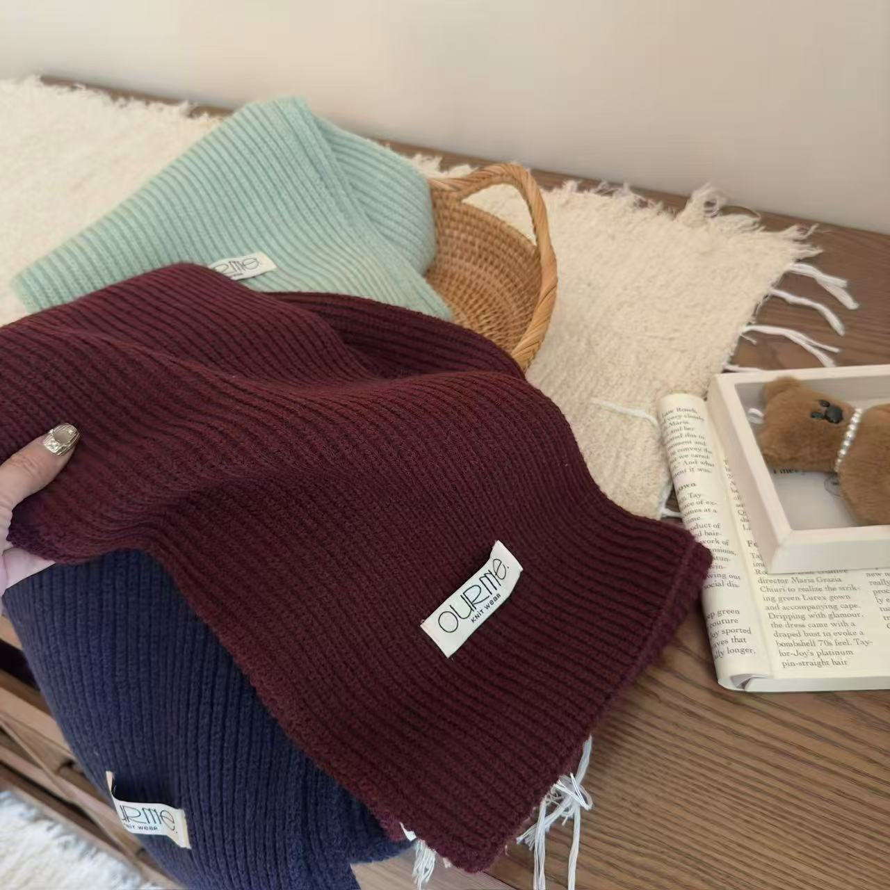 2024 한국 이스트 게이트 따뜻한 단색 겨울 새로운 도파민 따뜻한 목 작은 스카프 목도리 스카프스토어 가기
