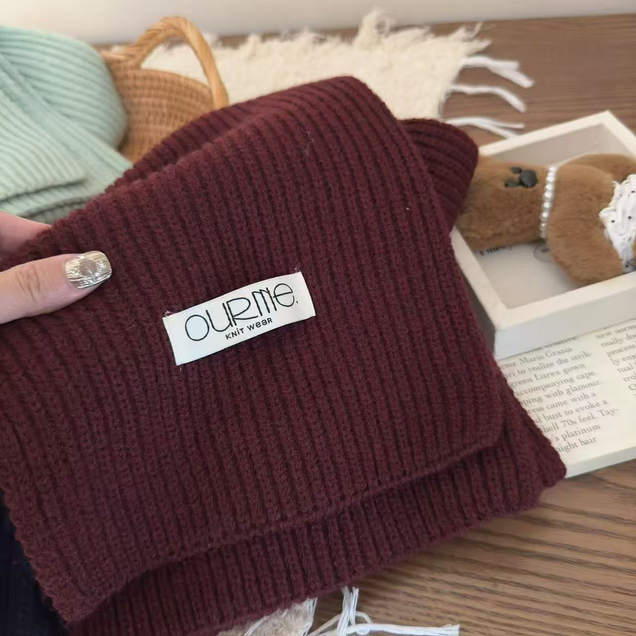 2024 한국 이스트 게이트 따뜻한 단색 겨울 새로운 도파민 따뜻한 목 작은 스카프 목도리 스카프