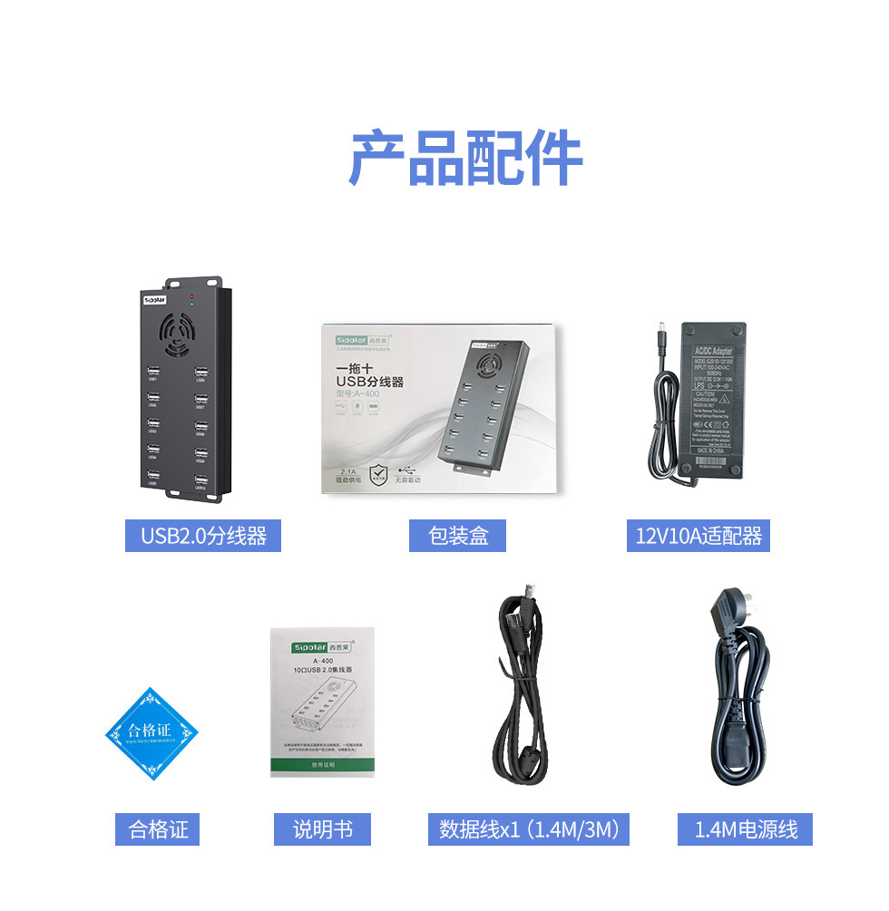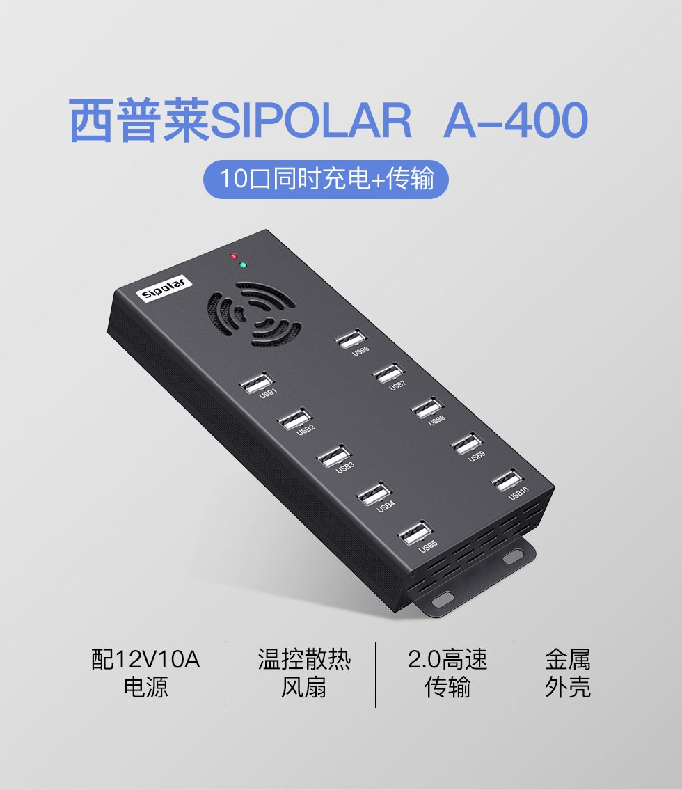 Sipley A- 400 10 USB2.0 허브 허브 허브 허브 전원 공급 장치 휴대 전화 패드 태블릿 배치 브러시 2.1스토어 가기