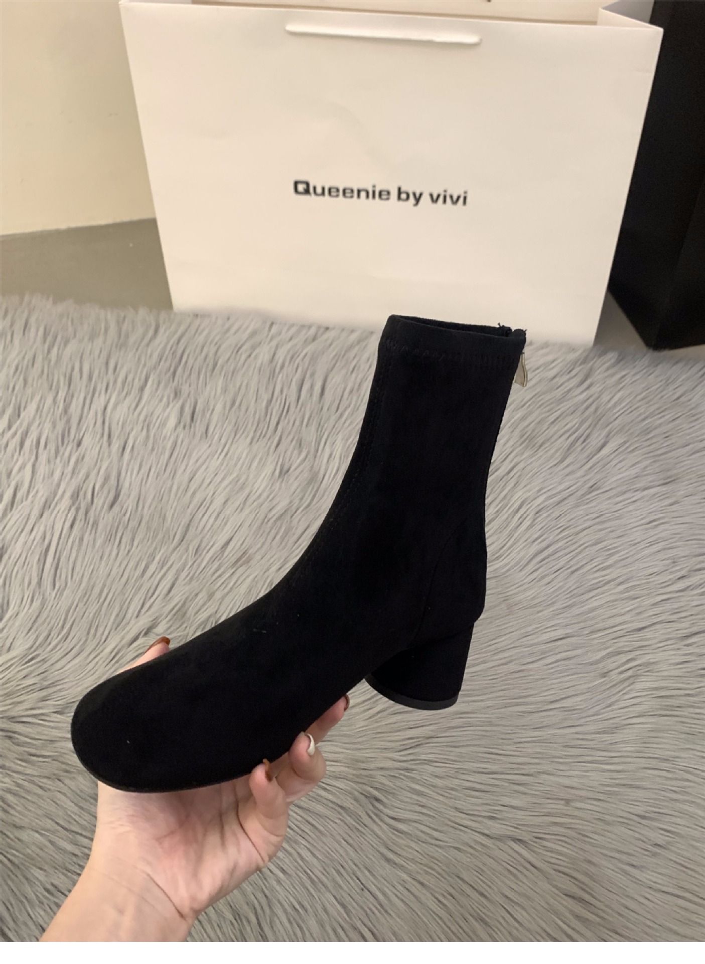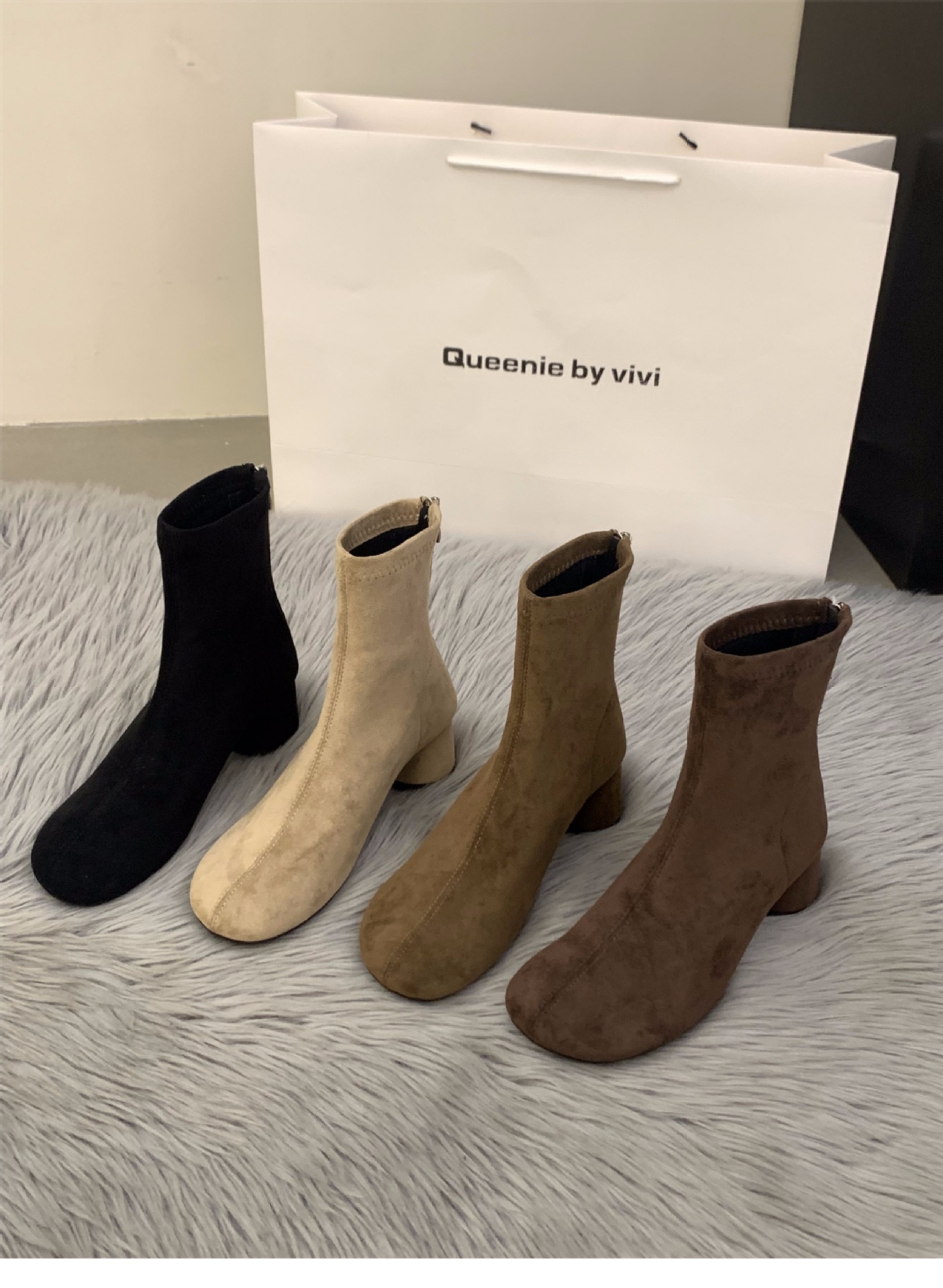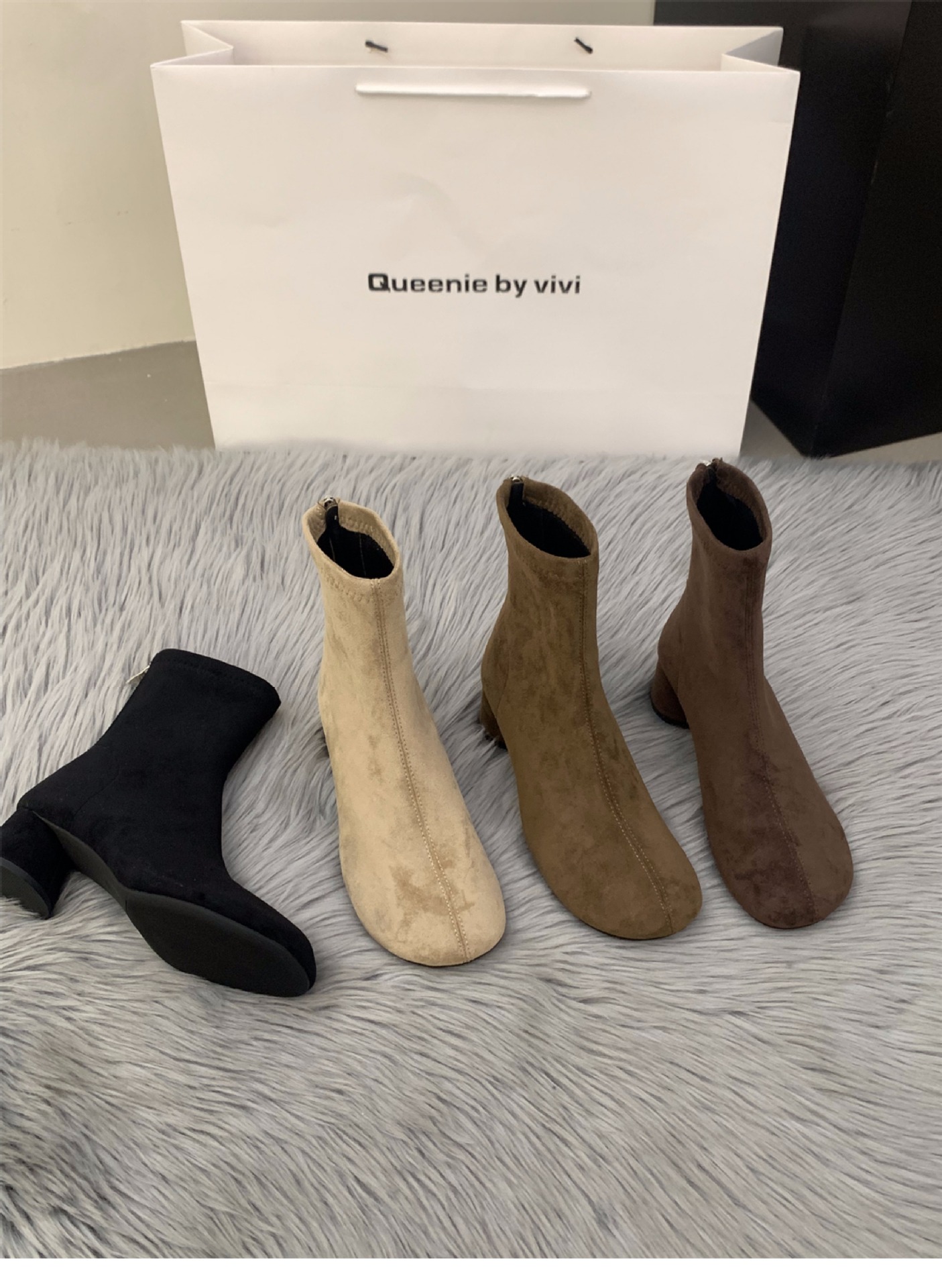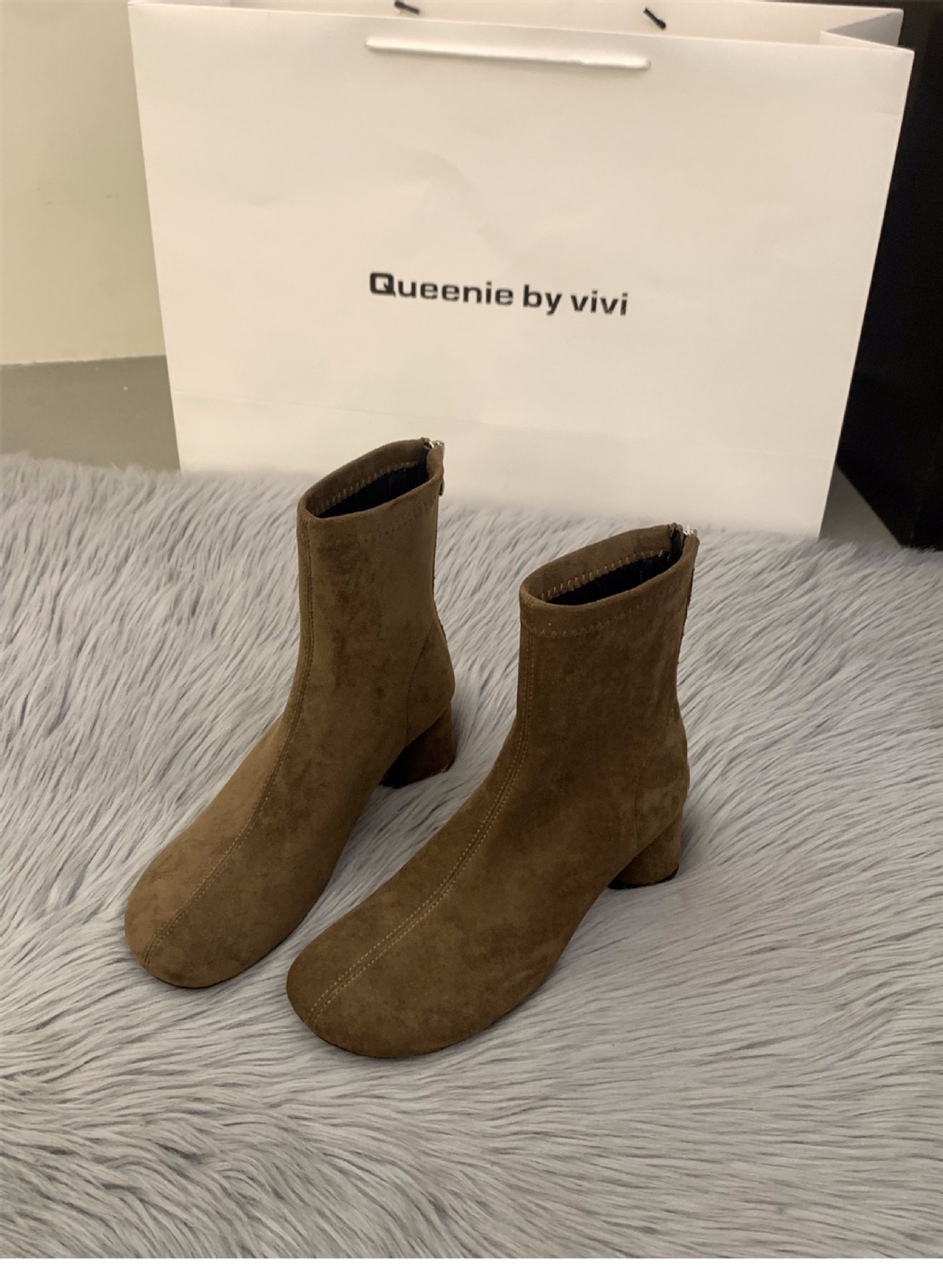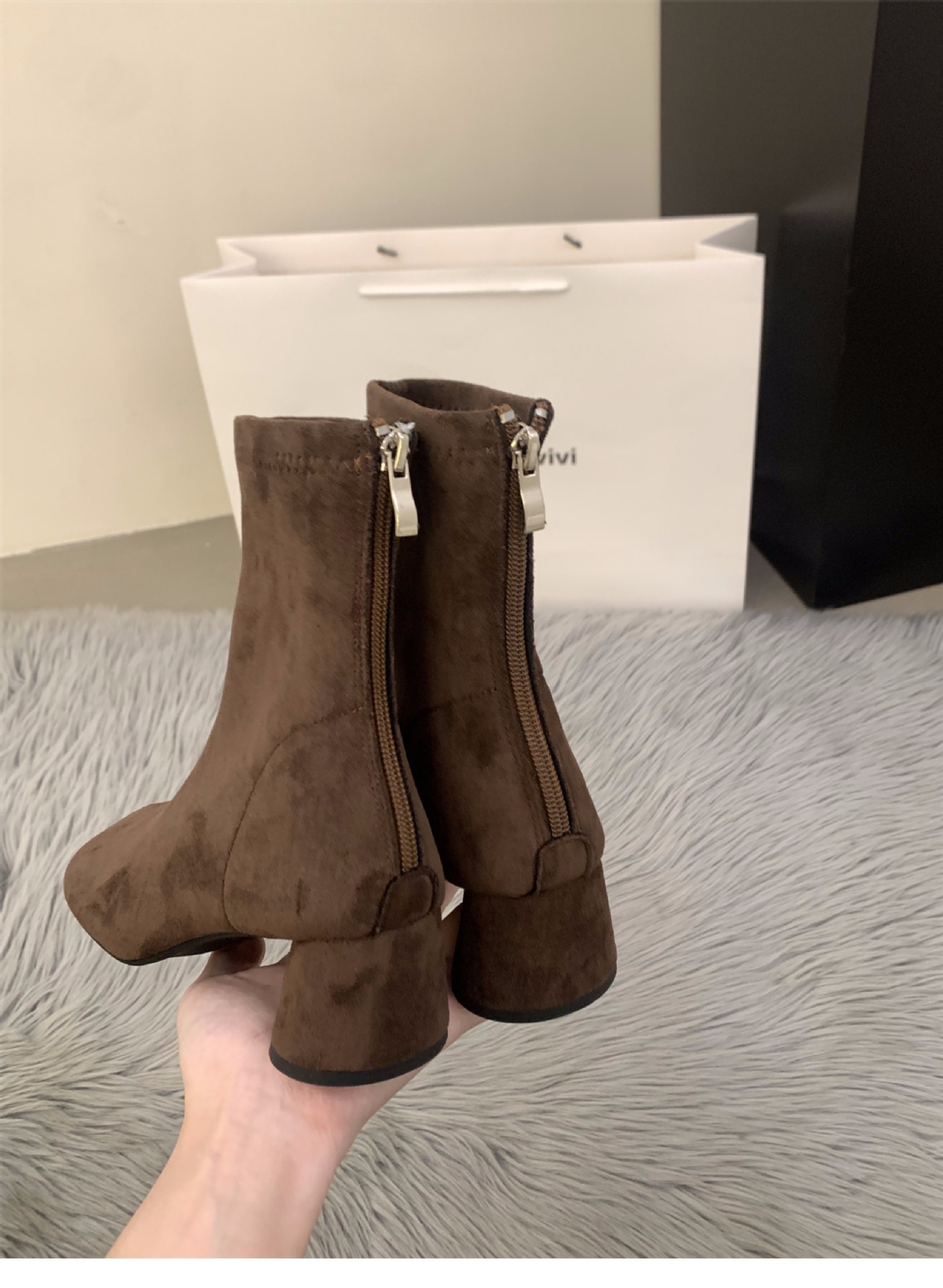 하이힐 빈티지 스웨이드 얇은 발목 부츠 여성 신발 2024 새로운 가을과 겨울 다크 브라운 마틴 부츠 프랑스 작은 발목 부츠스토어 가기