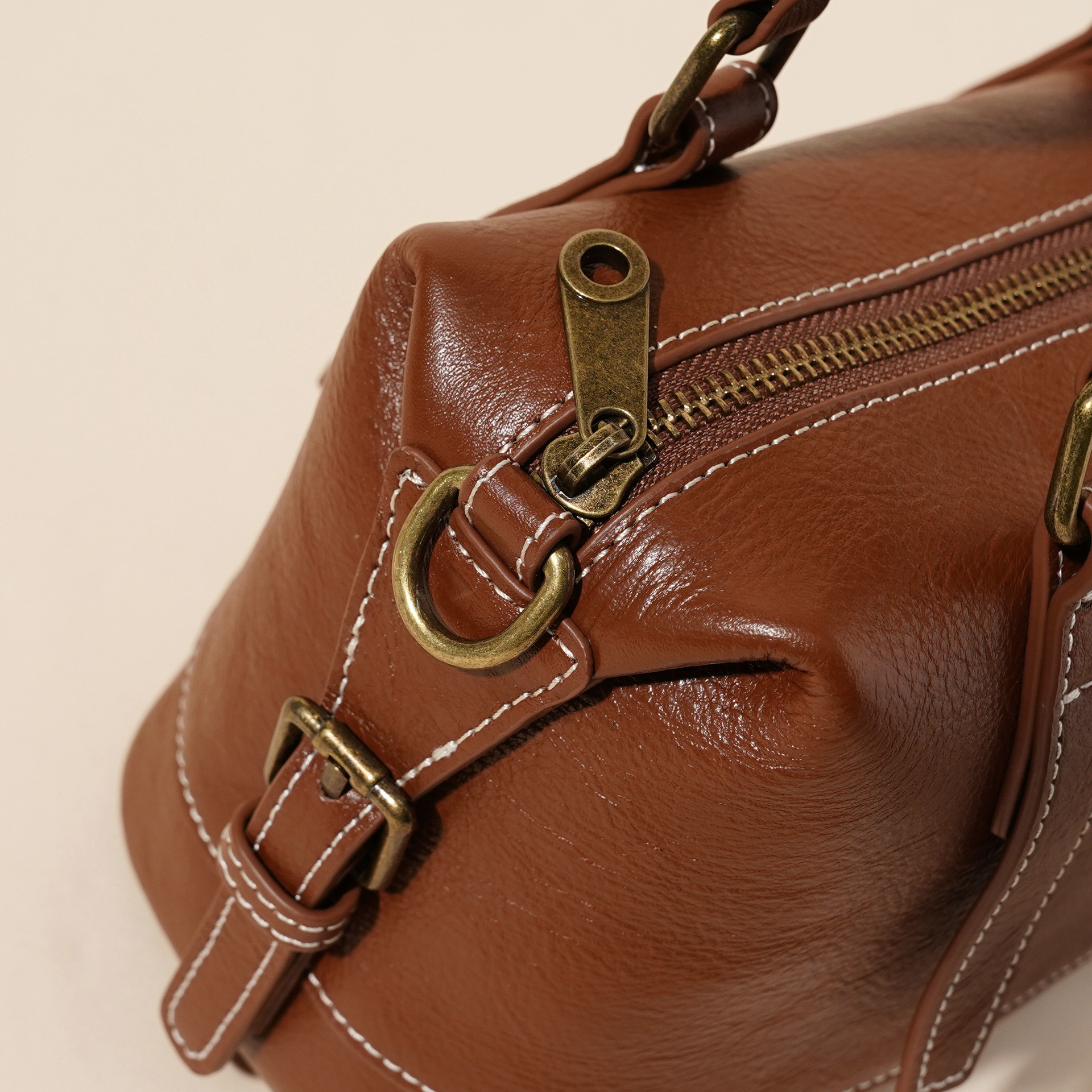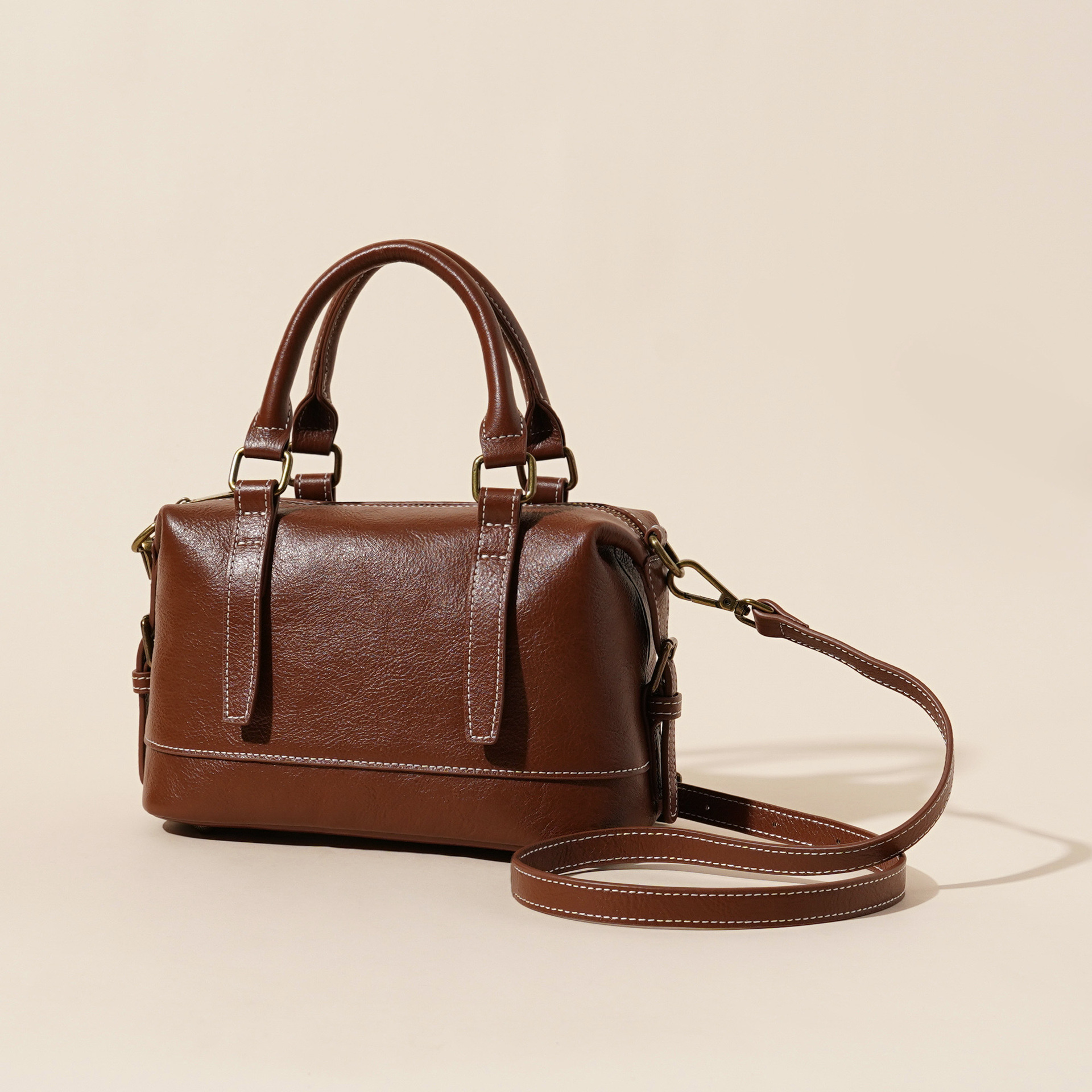 1층 소가죽 2025 새로운 틈새 통근 복고풍 핸드백 심플 소녀 가죽 원 숄더 크로스 바디 핸드백