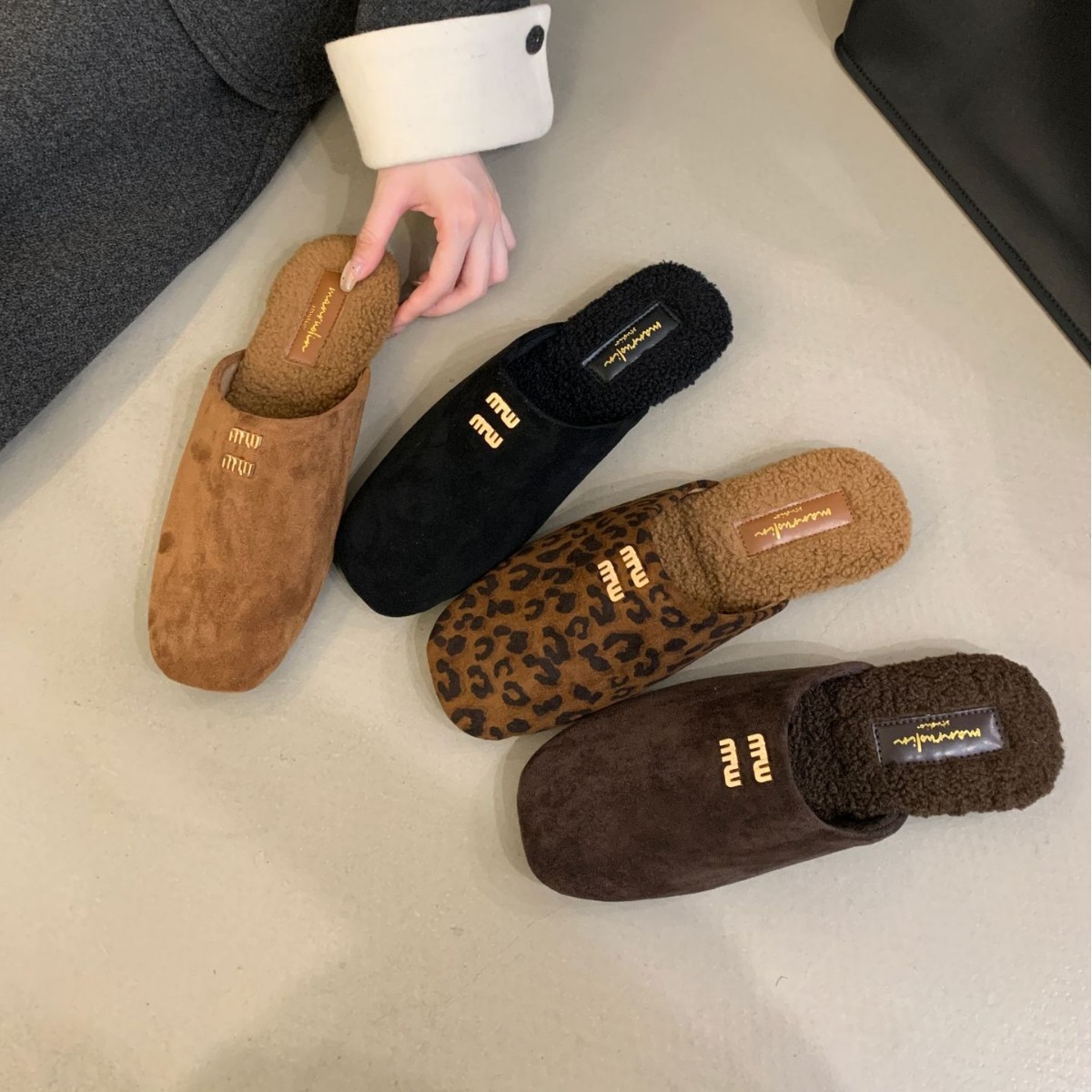 마오 마오 슬리퍼 여성 겉옷 2024 가을과 겨울 새 밤 바람 레트로 바오 터우 반 슬리퍼 기모 따뜻한 집면 신발