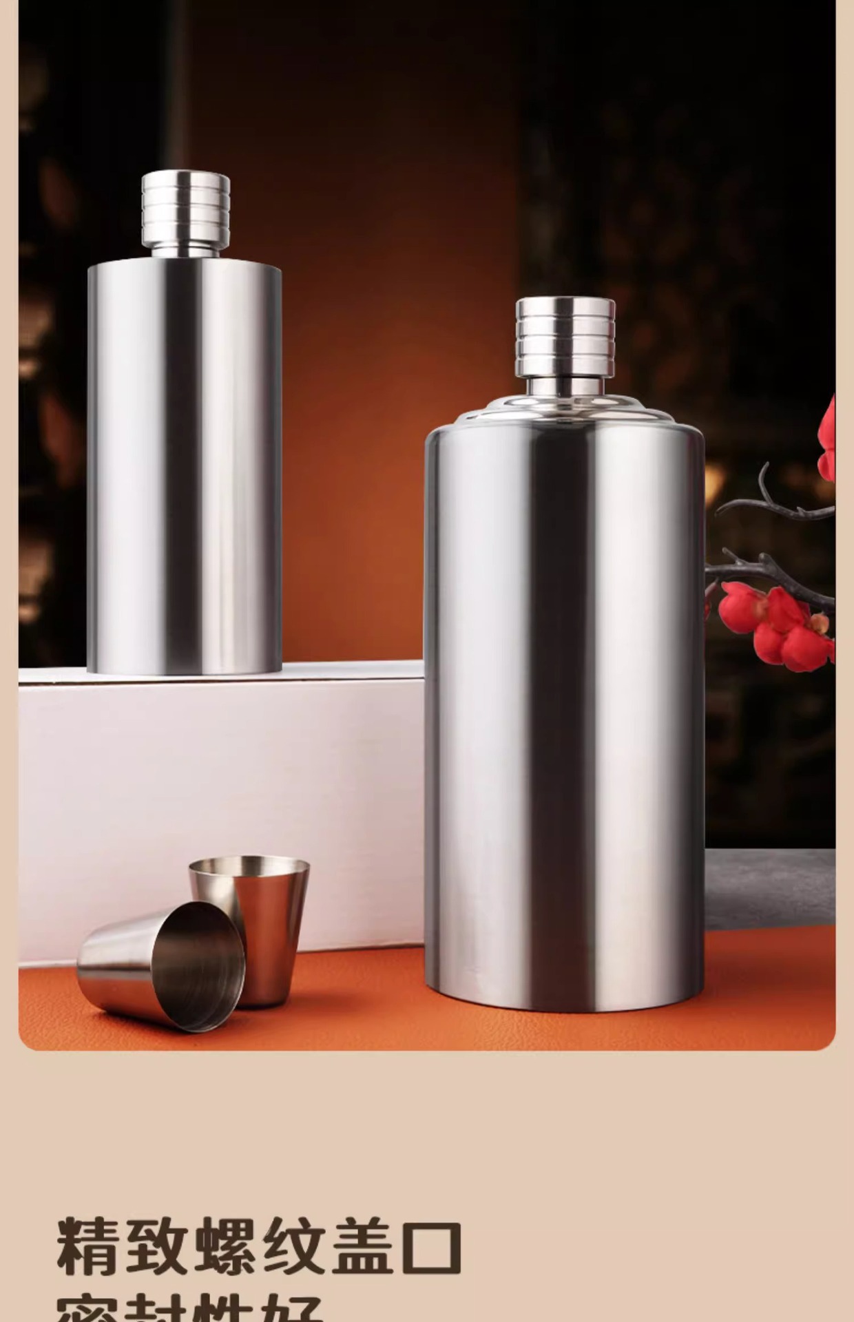 Baijie 304 스테인레스 스틸 1kg 가정용 엉덩이 플라스크 휴대용 맞춤형 두꺼운 창조적 인 주류 병스토어 가기