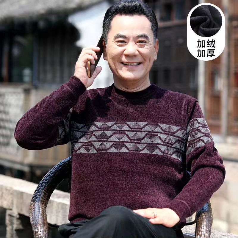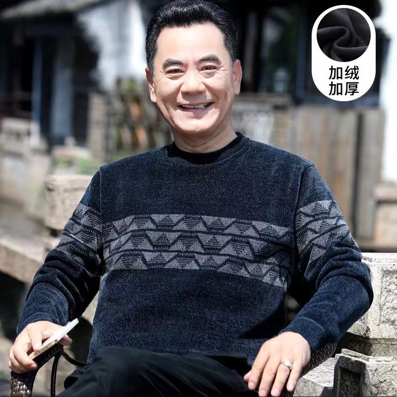 중년 아빠 스웨터 Chenille Crewneck 스웨터 가을과 겨울 두꺼운 기모 니트웨어 중년 남성 겨울 의류