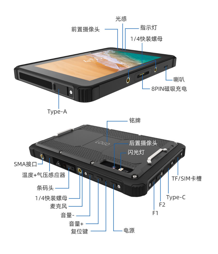 HUGEROCK L8 국내 8 인치 스마트 스토리지 UAV는 산업 등급 3 방지 고정 태블릿 PC를 조작합니다.
