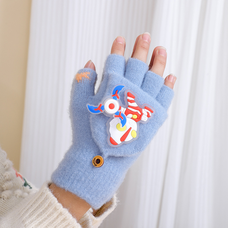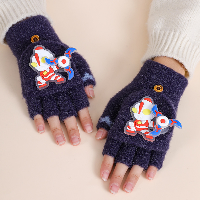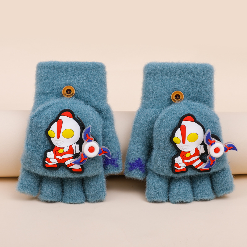 소년 장갑 겨울 귀여운 감기 장갑 학생 반 손가락 어린이 Ott 어린이 따뜻한 플립-온 장갑 쓰기