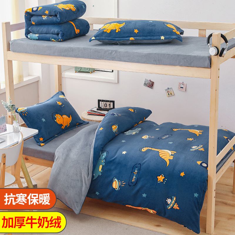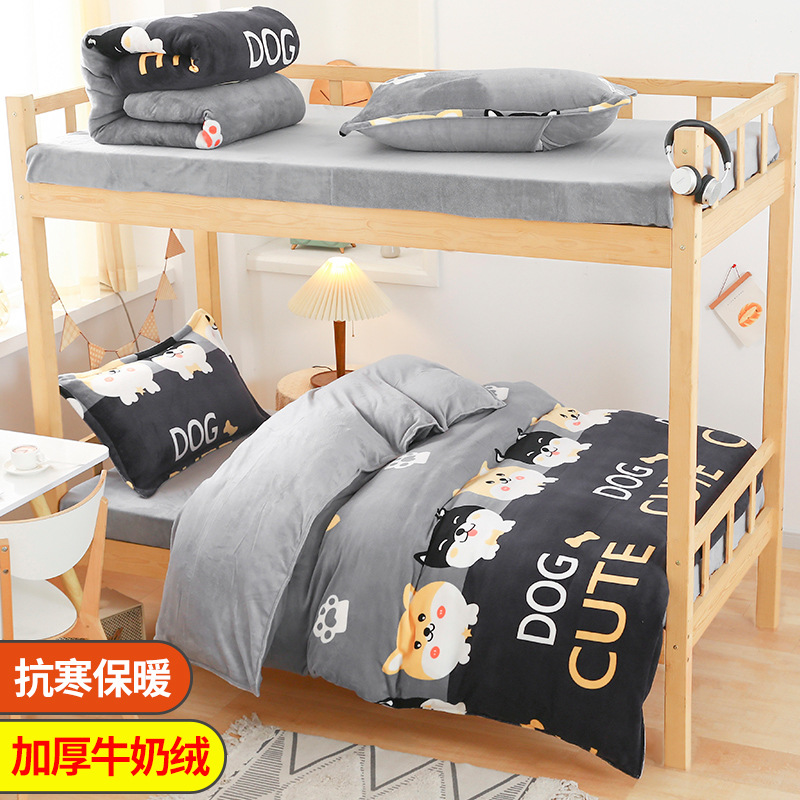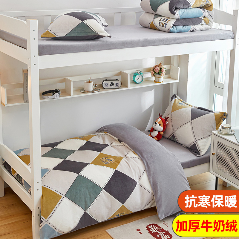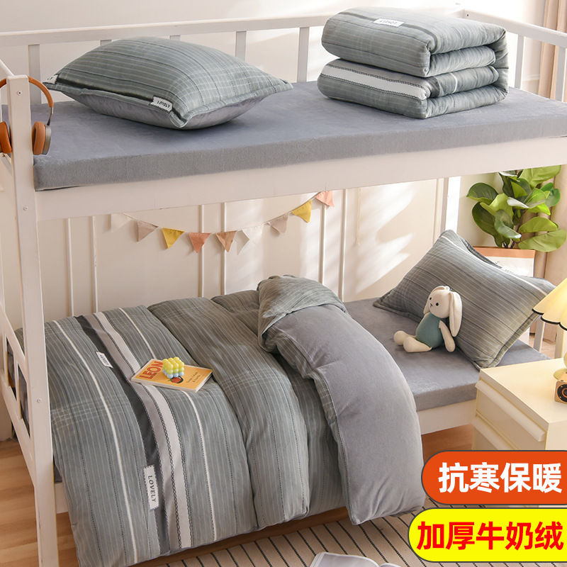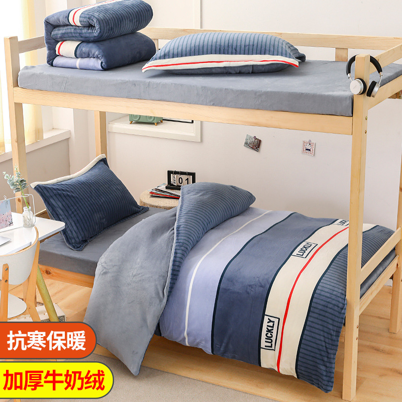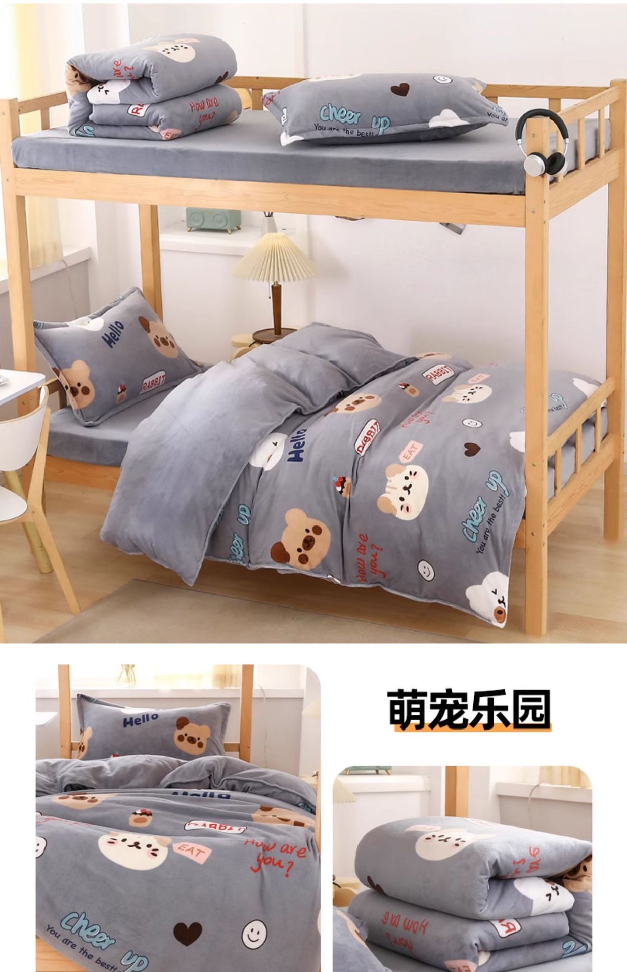 밀크 벨벳 학생 기숙사 침대 3 피스 코랄 벨벳 침대 시트 퀼트 커버 싱글 기모 두꺼운 팔레 벨벳 겨울스토어 가기