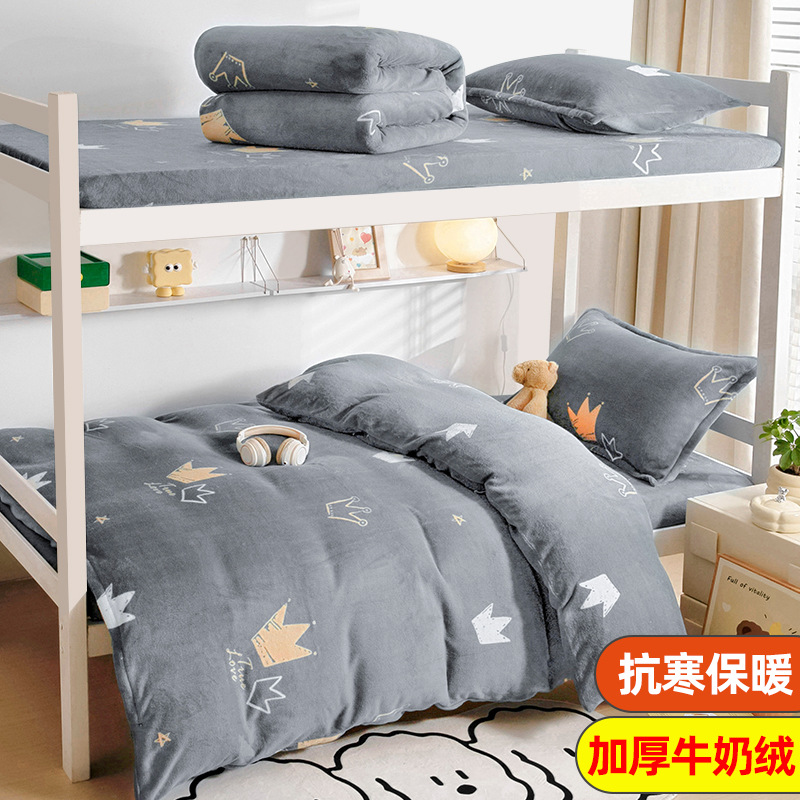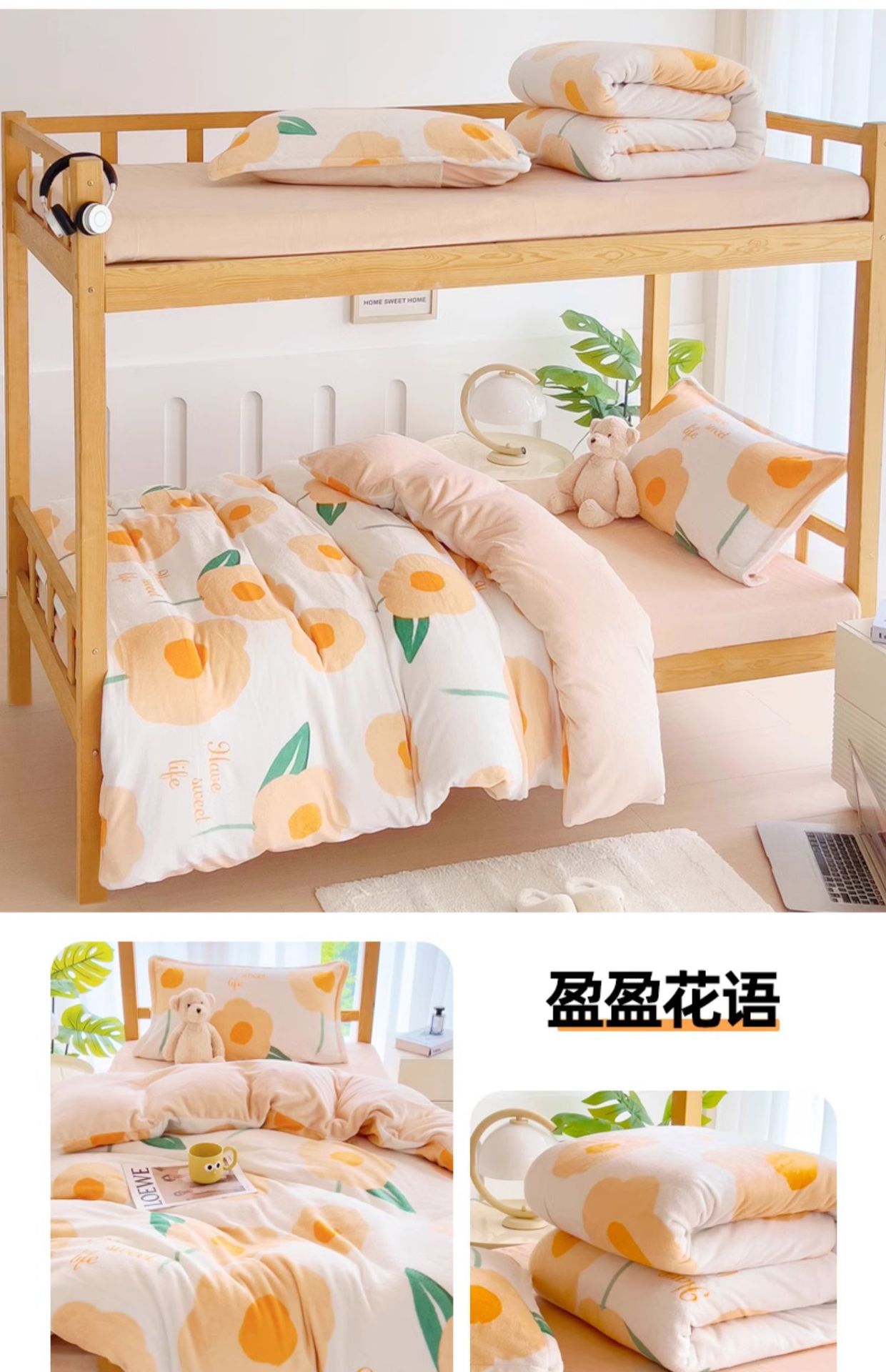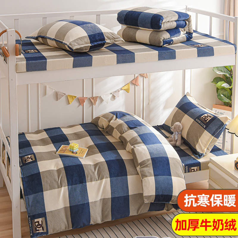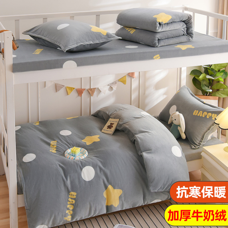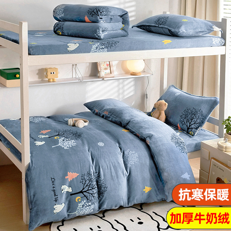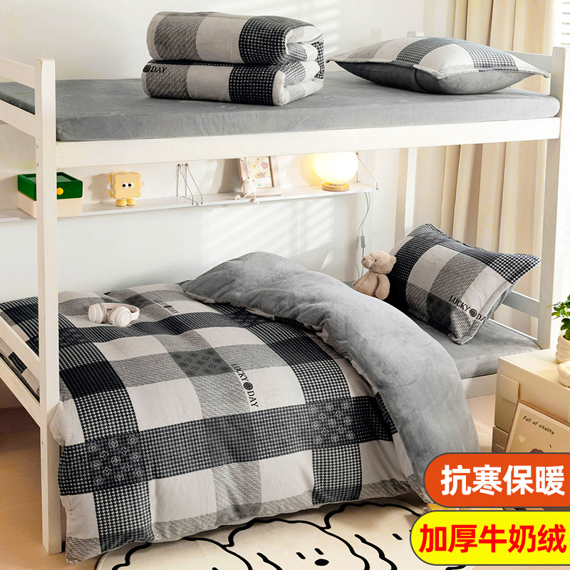 밀크 벨벳 학생 기숙사 침대 3 피스 코랄 벨벳 침대 시트 퀼트 커버 싱글 기모 두꺼운 팔레 벨벳 겨울스토어 가기