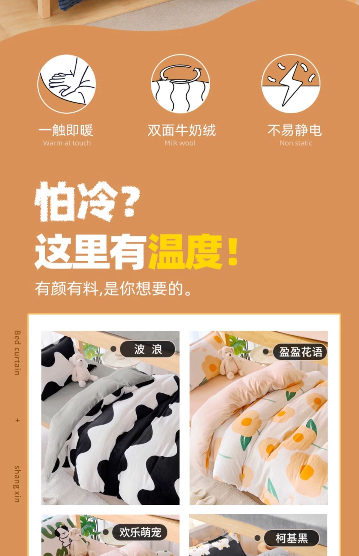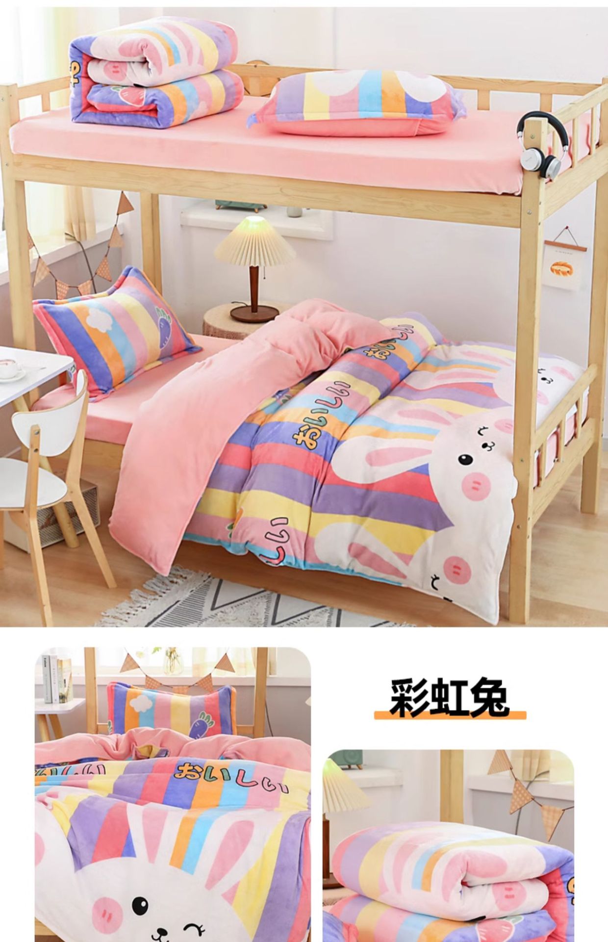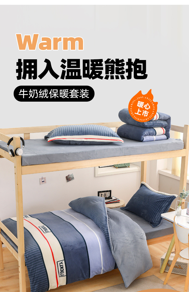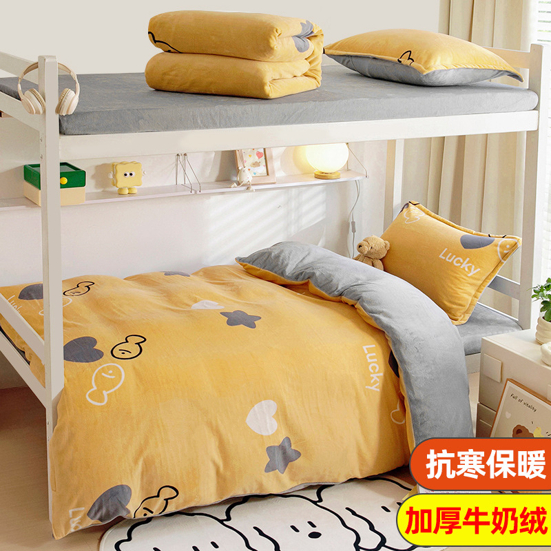 밀크 벨벳 학생 기숙사 침대 3 피스 코랄 벨벳 침대 시트 퀼트 커버 싱글 기모 두꺼운 팔레 벨벳 겨울스토어 가기