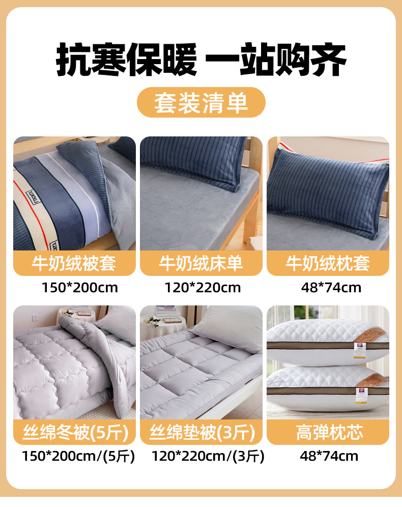 • 1.2m 침대 시트 6종 세트(3피스 침대 시트 세트 + 2.5kg 실크 이불 + 1.5kg 매트리스 + 베개 코어)