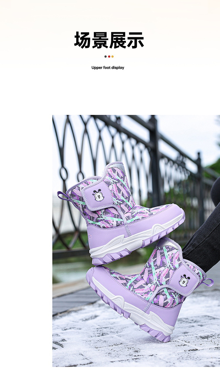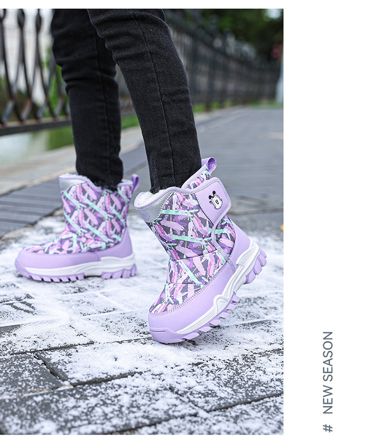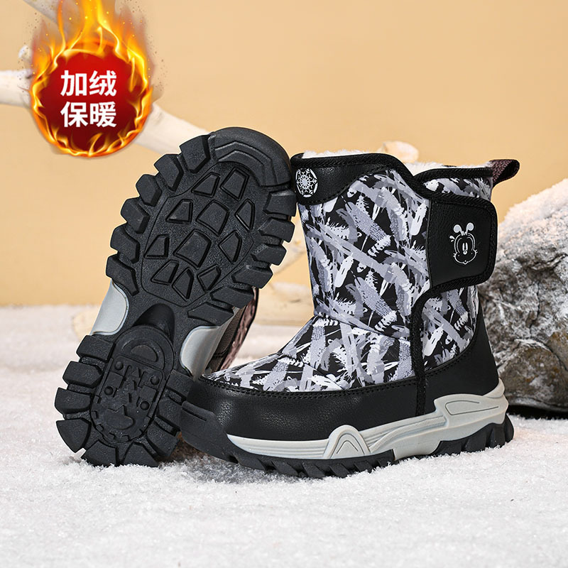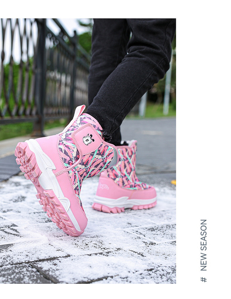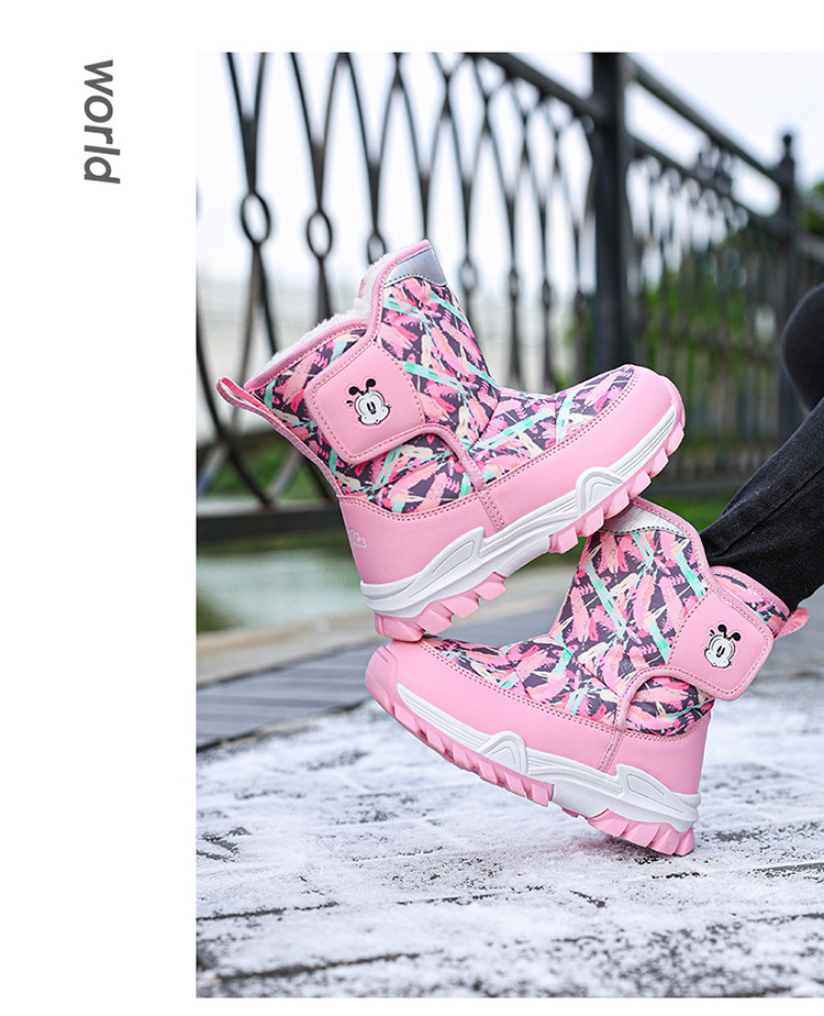Babu Bean Girls 'Cotton Boots 어린이 기모 두꺼운 동북 스노우 부츠 소년 가죽 방수 제로 미만 미끄럼 방지 코튼 신발