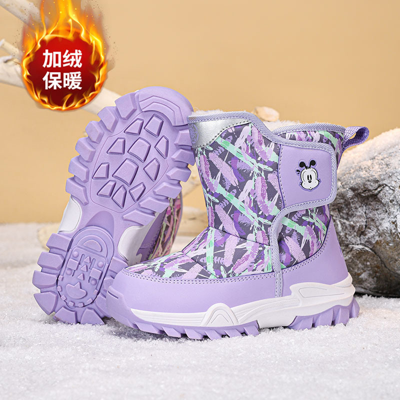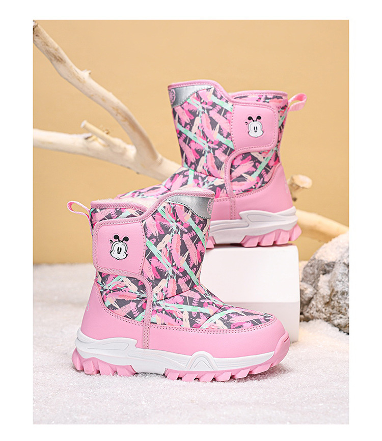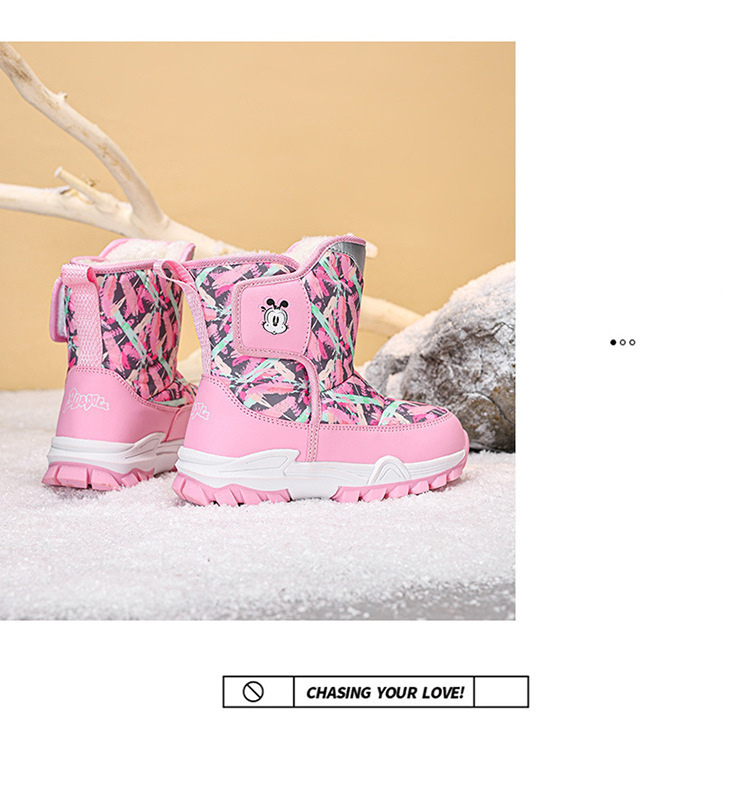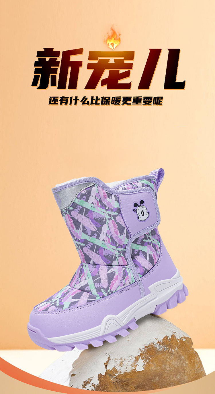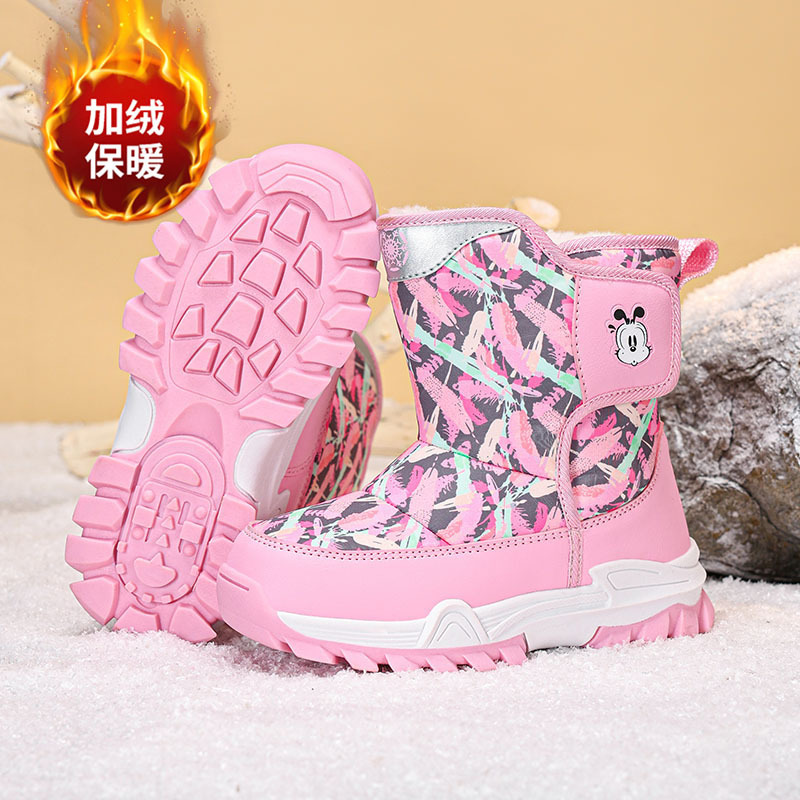 Babu Bean Girls 'Cotton Boots 어린이 기모 두꺼운 동북 스노우 부츠 소년 가죽 방수 제로 미만 미끄럼 방지 코튼 신발