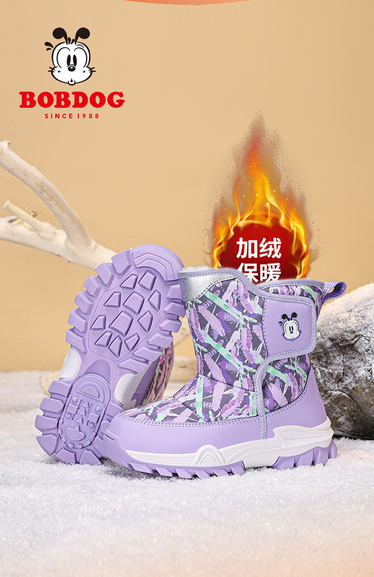 Babu Bean Girls 'Cotton Boots 어린이 기모 두꺼운 동북 스노우 부츠 소년 가죽 방수 제로 미만 미끄럼 방지 코튼 신발스토어 가기