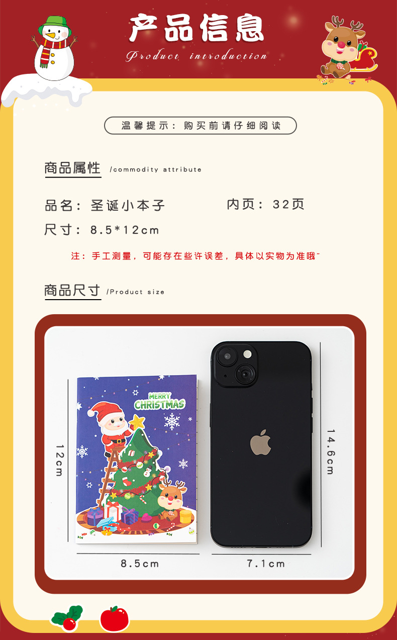크리스마스 노트북 만화 귀여운 포켓 휴대용 미니 일기 학생 높은 가치 노트북스토어 가기