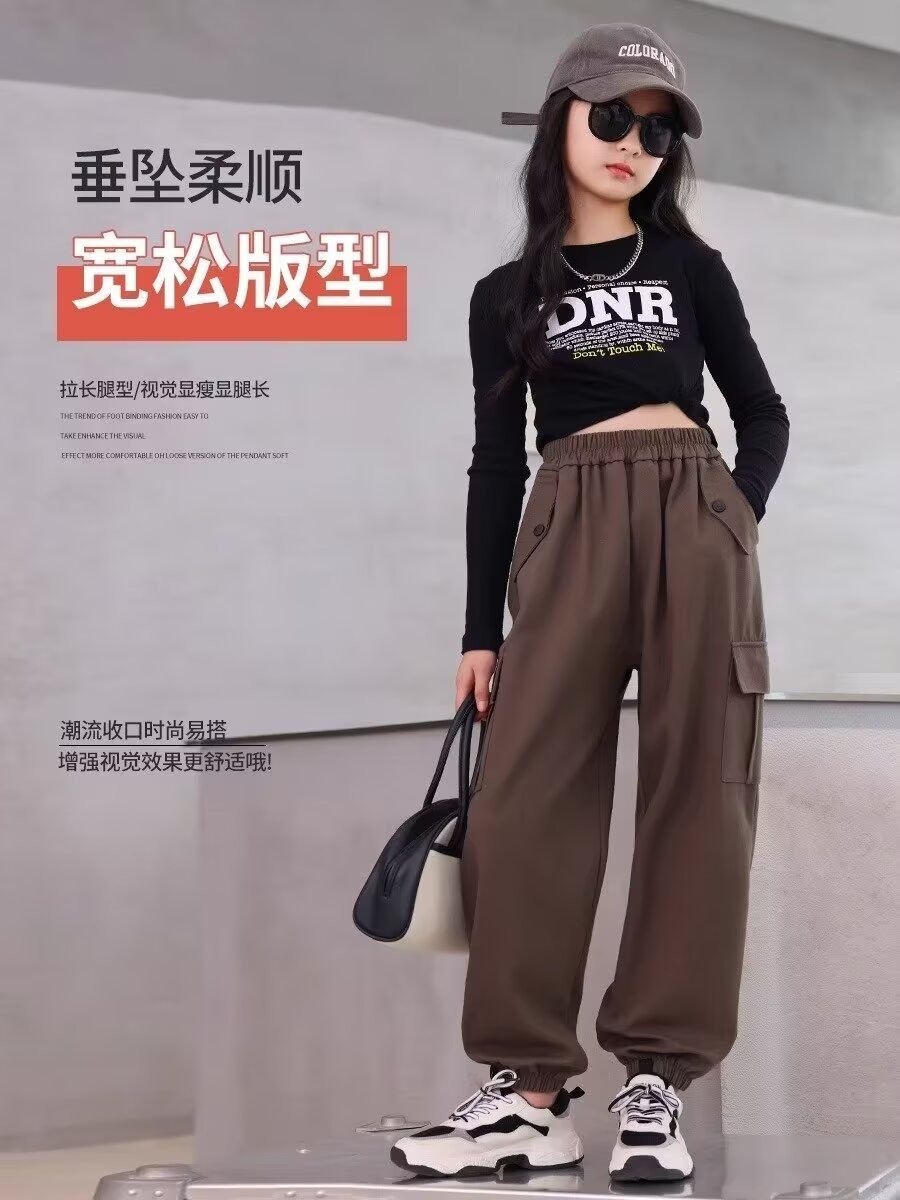 2024 년 새 소녀 바지 봄과 가을 어린이 캐주얼 바지 소녀 가을 느슨한 발가락 큰 어린이 바지스토어 가기