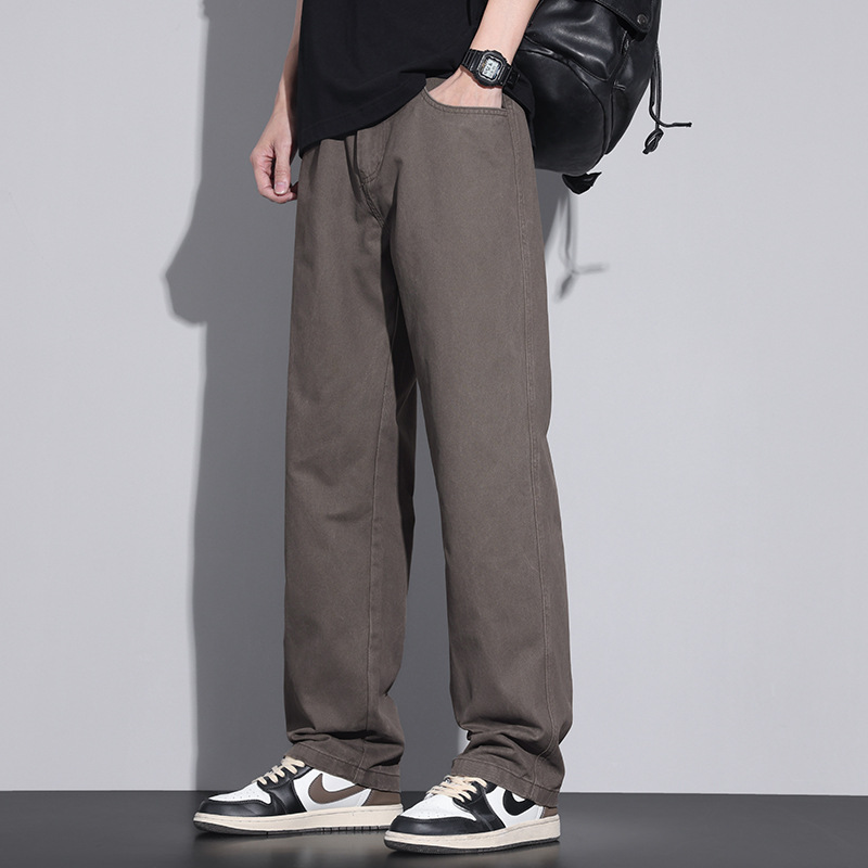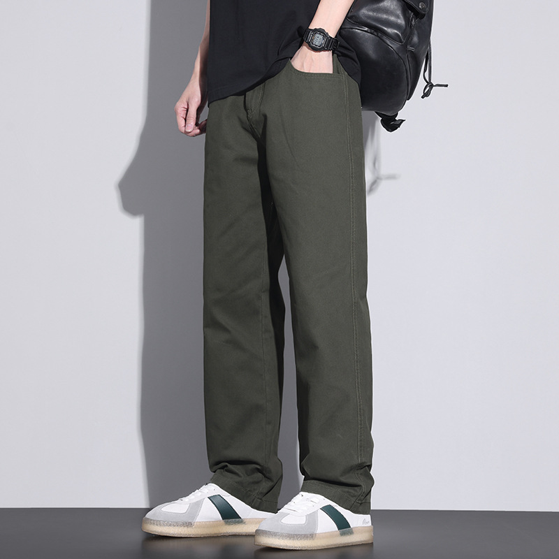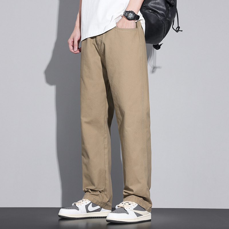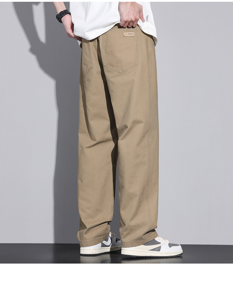 카키색 캐주얼 바지 남성용 봄 가을 순면 아메리칸 스타일 작업복 바지 겨울용 기모 두꺼운 루즈핏 스트레이트 롱 팬츠