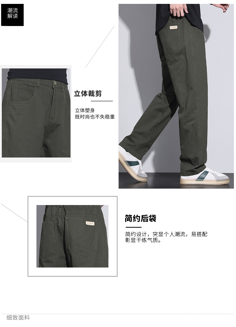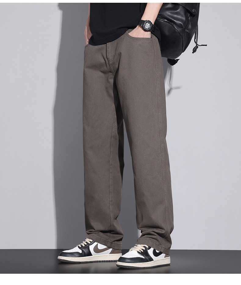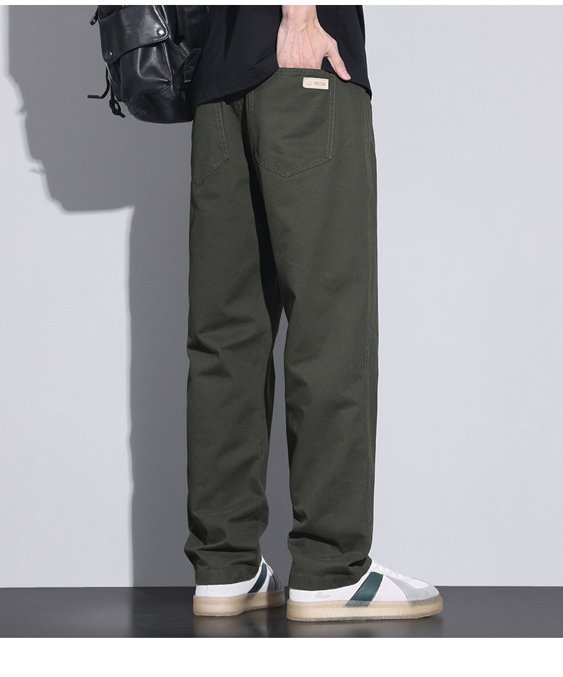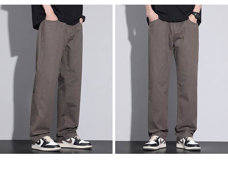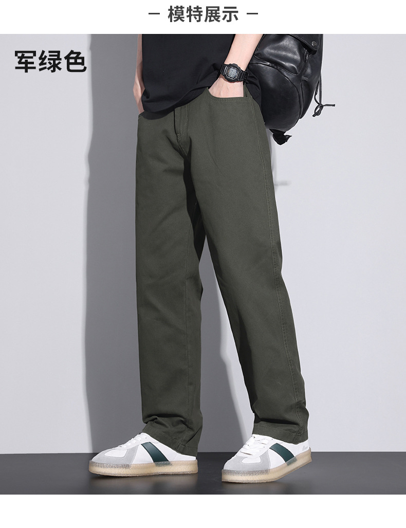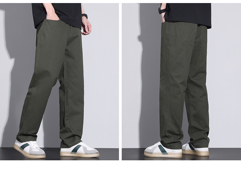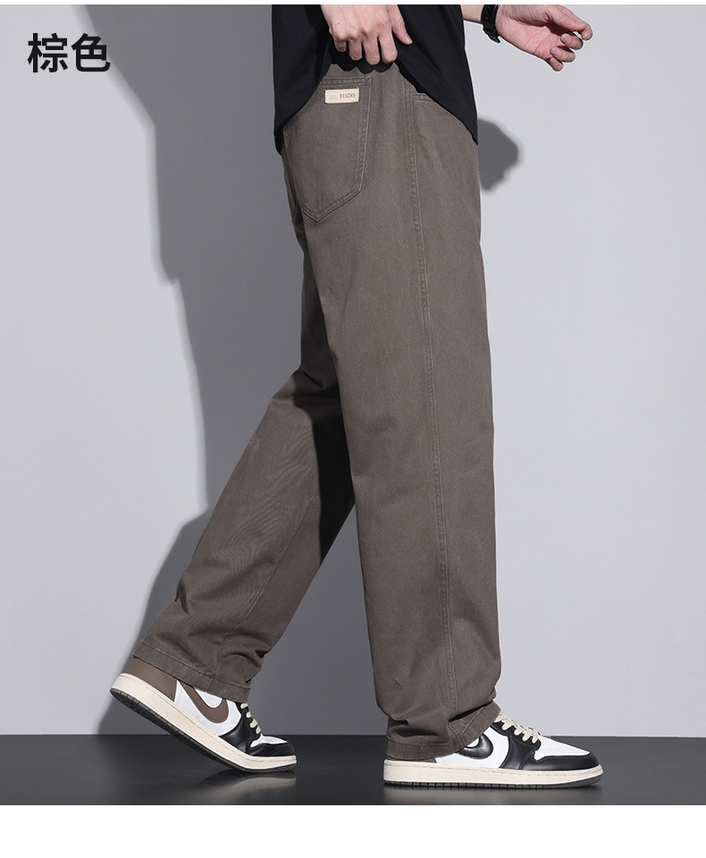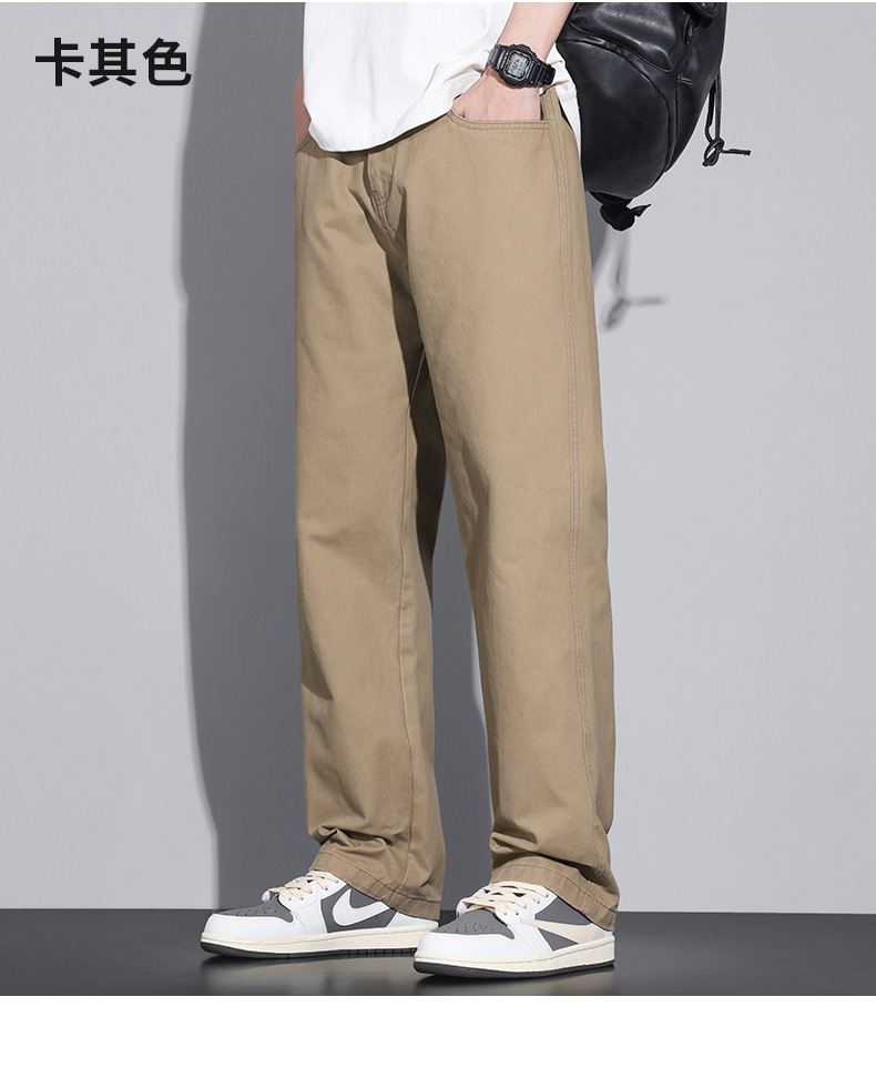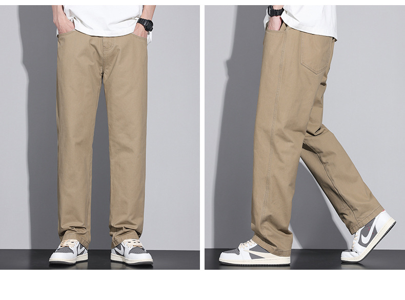 카키색 캐주얼 바지 남성용 봄 가을 순면 아메리칸 스타일 작업복 바지 겨울용 기모 두꺼운 루즈핏 스트레이트 롱 팬츠스토어 가기