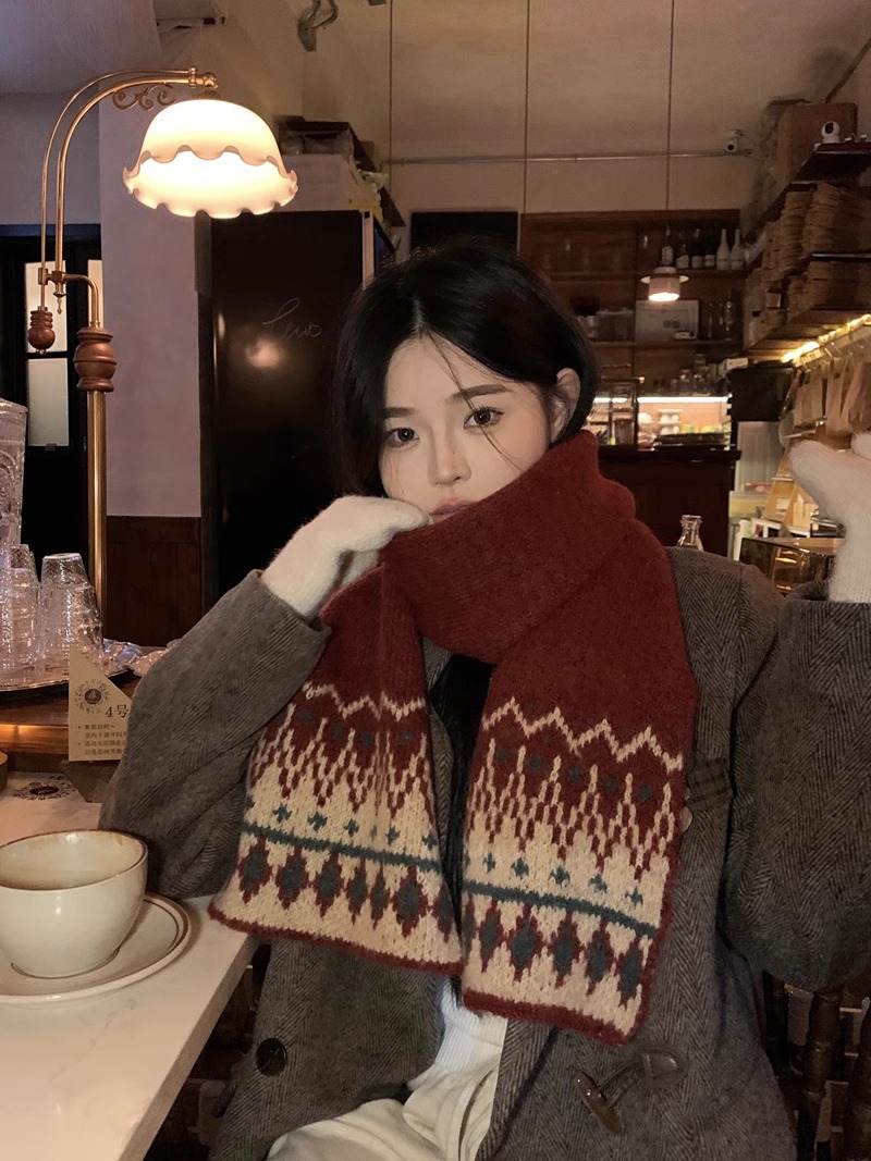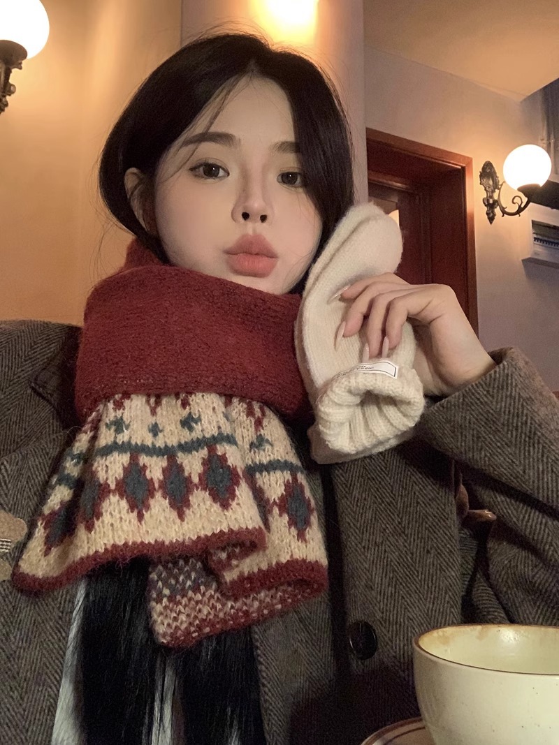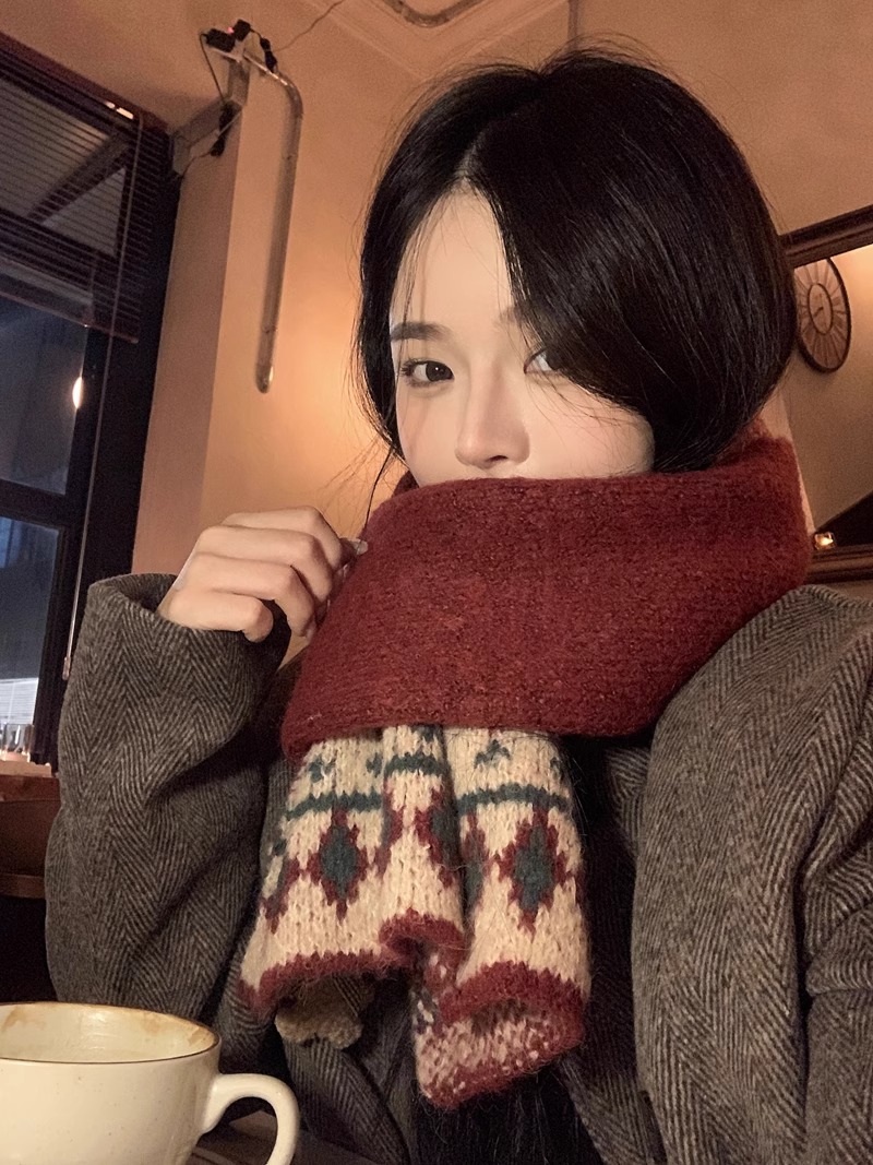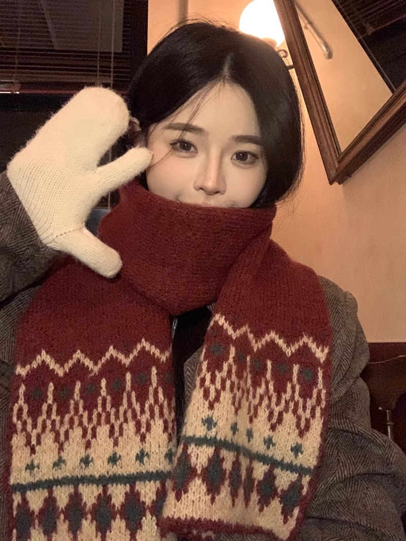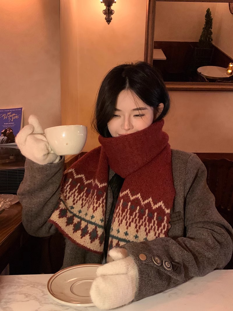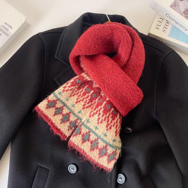 2024 새로운 민족 스타일 스카프 여성의 겨울 방한 따뜻한 복고풍 고급 니트 울 크리스마스 레드 스카프