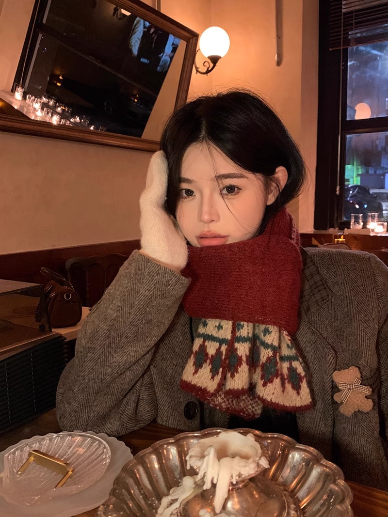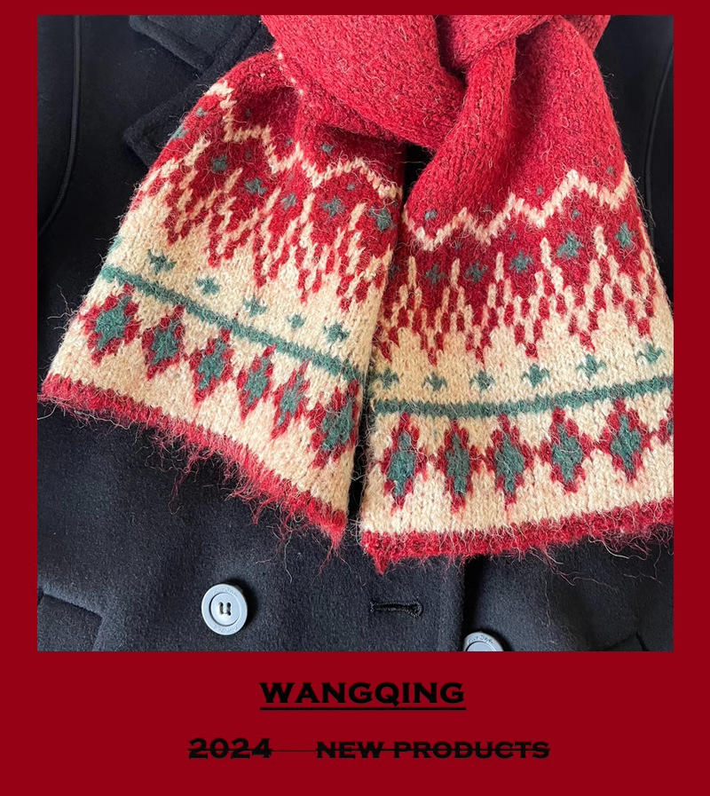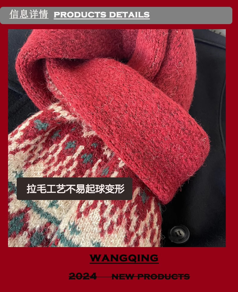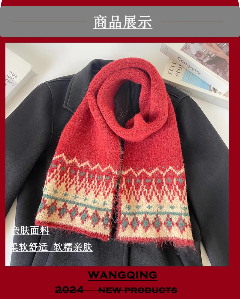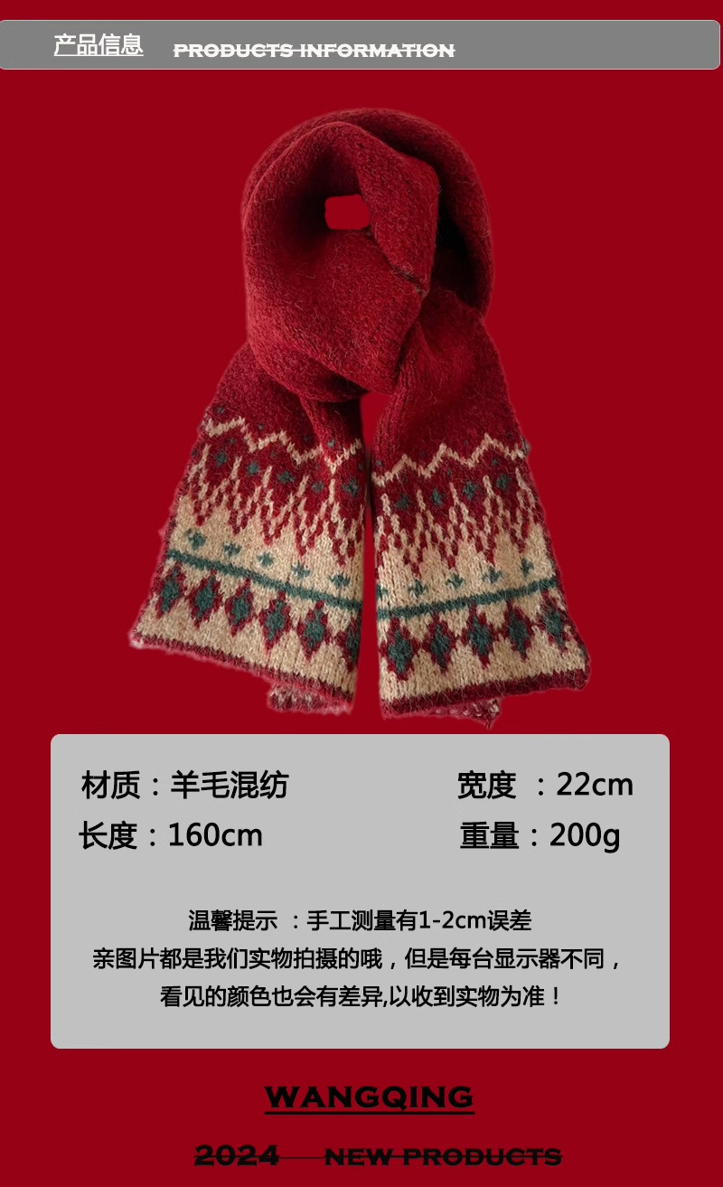2024 새로운 민족 스타일 스카프 여성의 겨울 방한 따뜻한 복고풍 고급 니트 울 크리스마스 레드 스카프스토어 가기