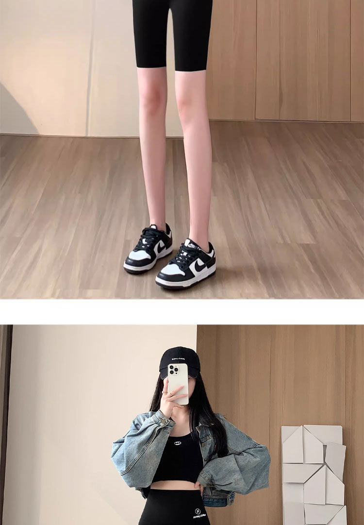 여성용 5부 샤크팬츠, 여름용 얇은 아우터 레깅스, 하이웨이스트, 뱃살 조절, 엉덩이 리프팅, 요가바비팬츠, 사이클링 라지사이즈스토어 가기