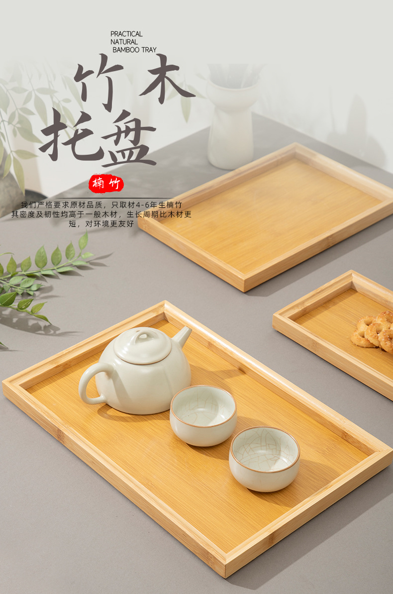대나무 트레이 직사각형 차 트레이 솔리드 우드 쿵푸 차 세트 워터 컵 트레이 일본 나무 디너 플레이트 호텔 디너 플레이트스토어 가기