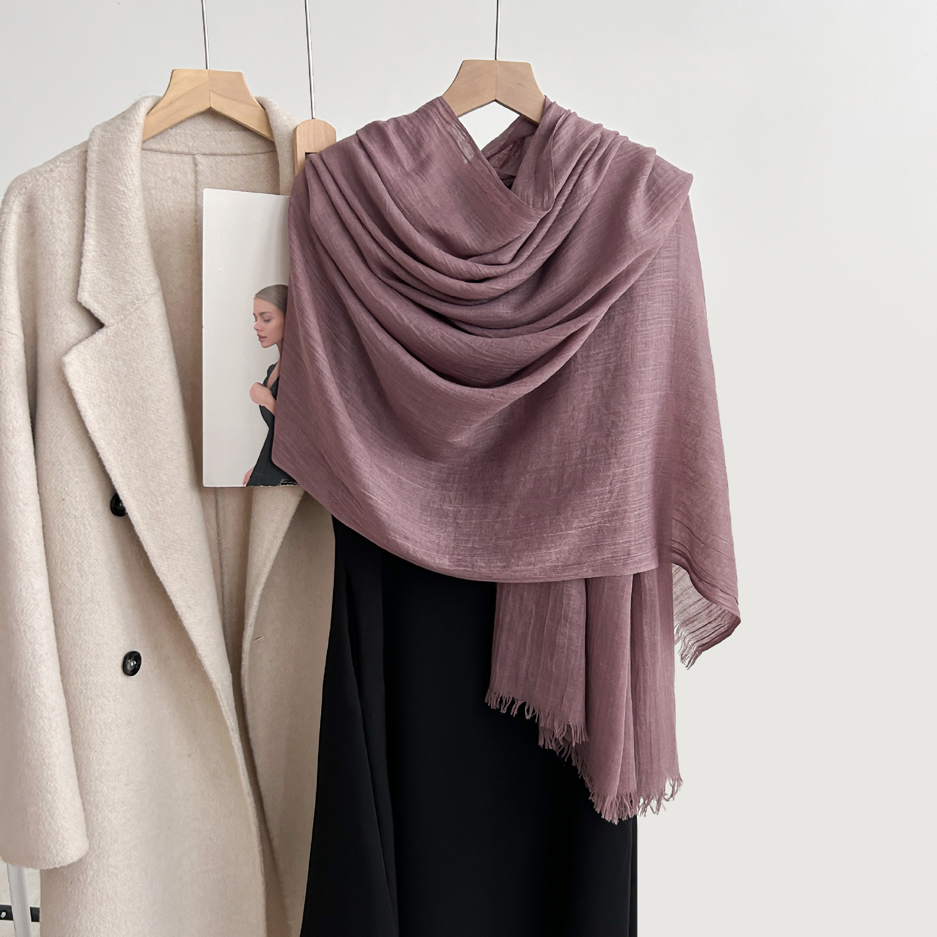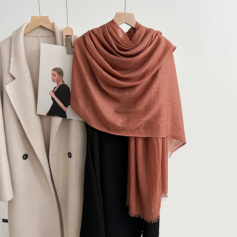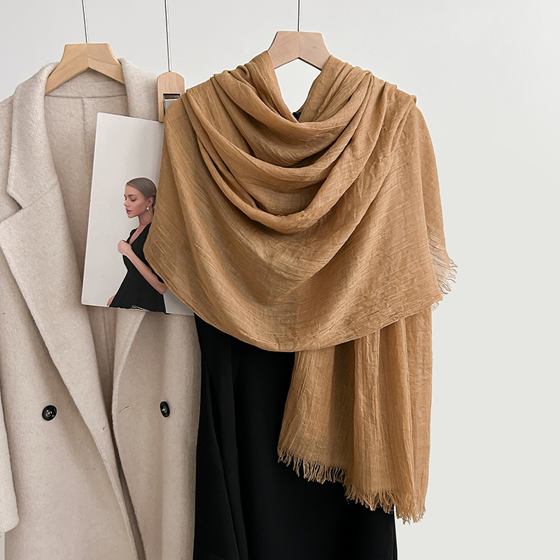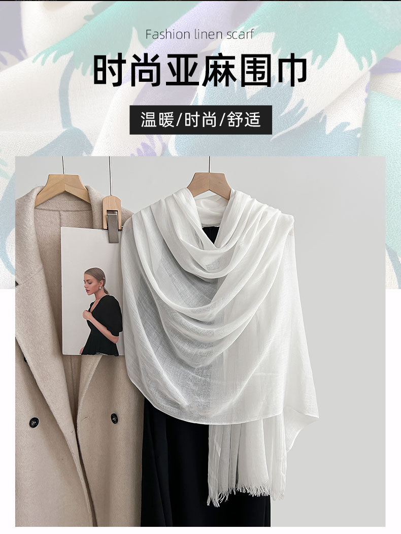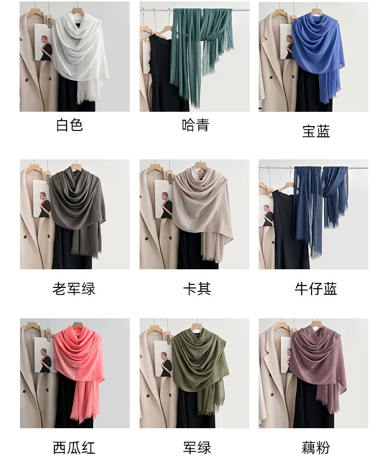 코튼 앤 리넨 스카프 패션 문학 스타일 솔리드 컬러 리넨 스카프 일본과 한국 여성의 에어컨이 설치된 방 목도리 선스크린 스카프스토어 가기