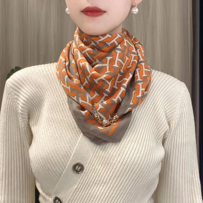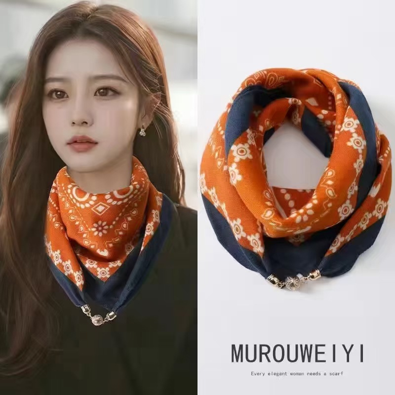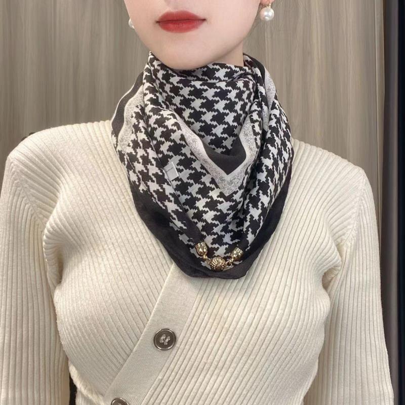 인터넷 연예인 패션 인쇄 스카프 봄과 여름 새로운 마그네틱 버클 스퀘어 스카프 65cm 올 매치 넥 보호 기질 스카프 여성스토어 가기