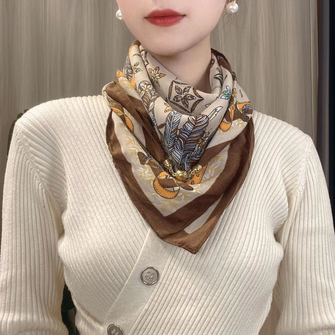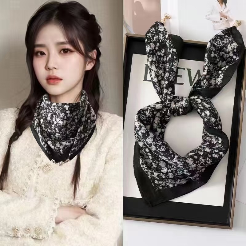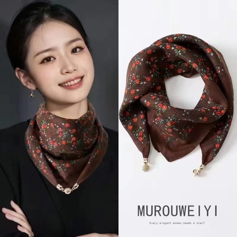 인터넷 연예인 패션 인쇄 스카프 봄과 여름 새로운 마그네틱 버클 스퀘어 스카프 65cm 올 매치 넥 보호 기질 스카프 여성
