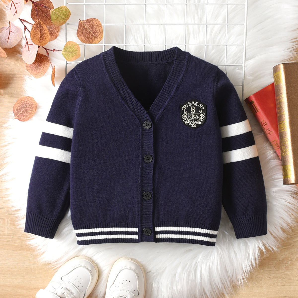 소년 줄무늬 카디건 가을과 겨울 새로운 어린이 니트웨어 세련된 스웨터 중대형 어린이 학교 유니폼 코트 가을 옷스토어 가기