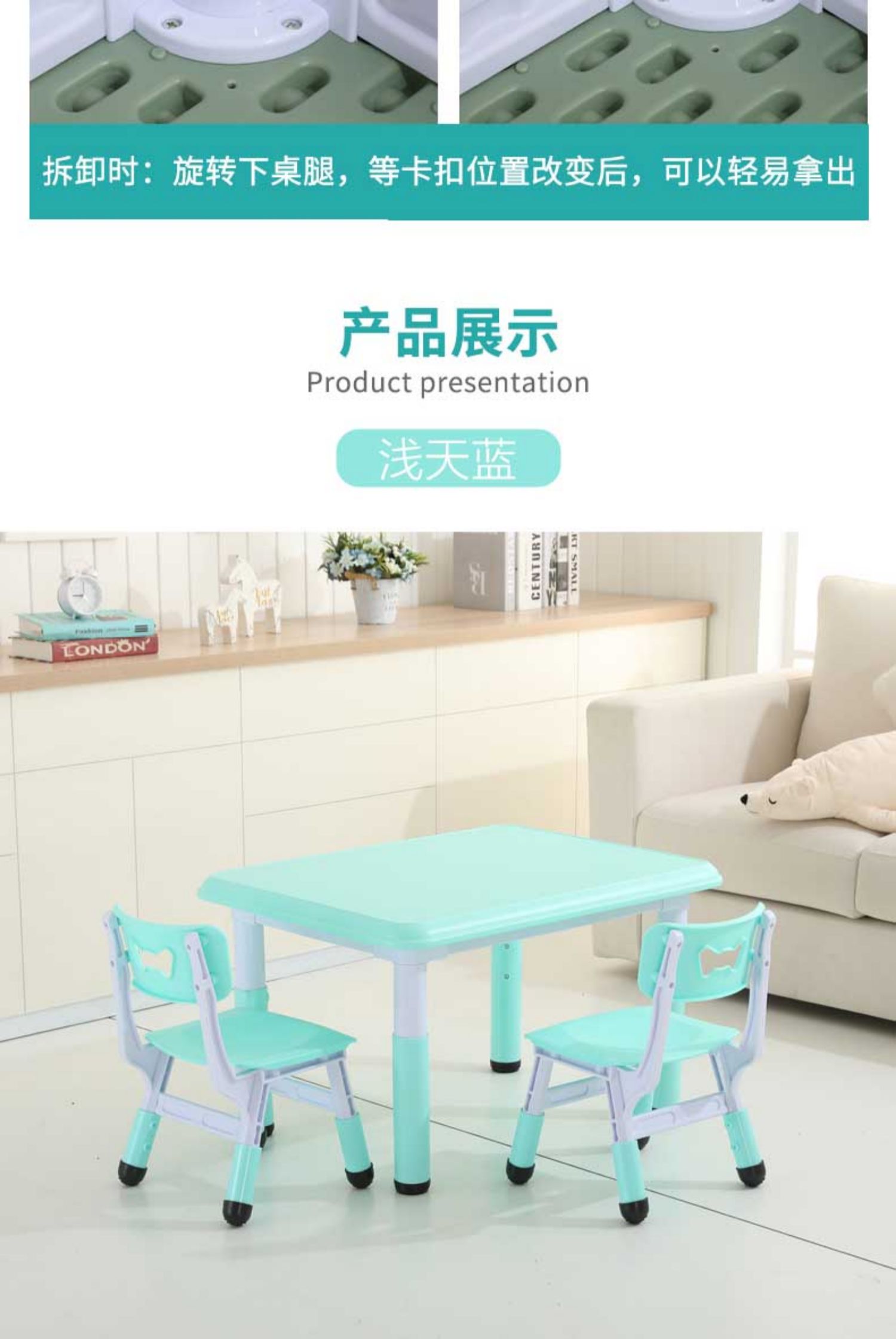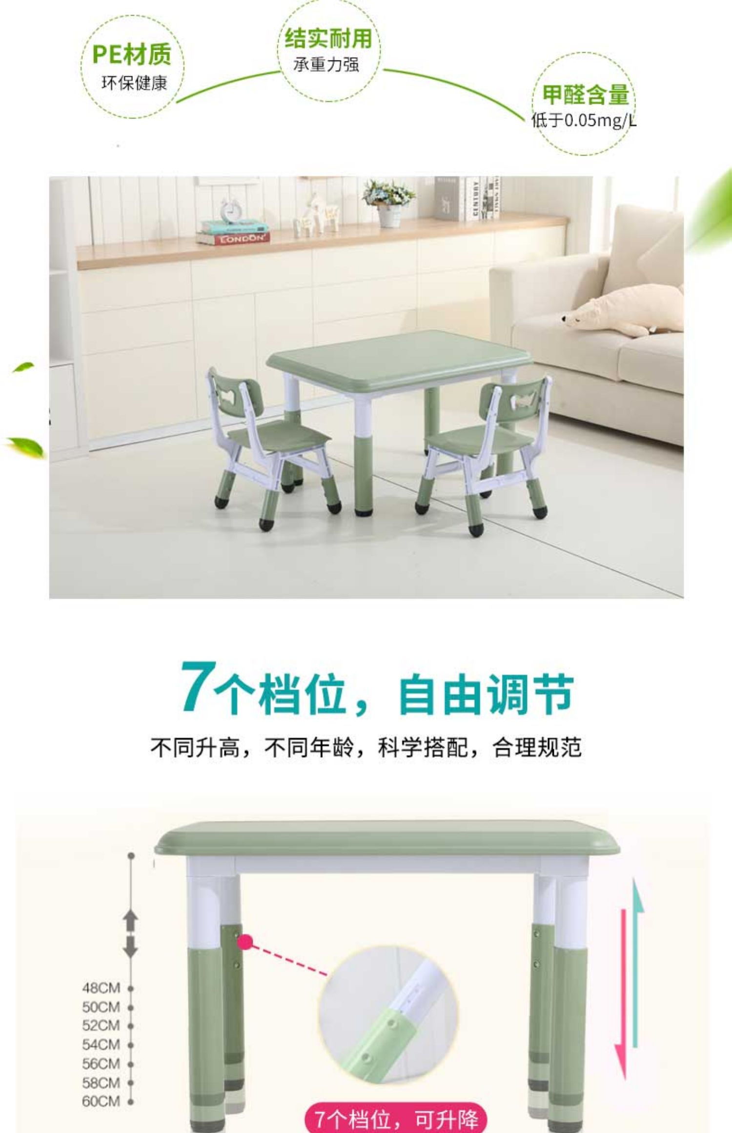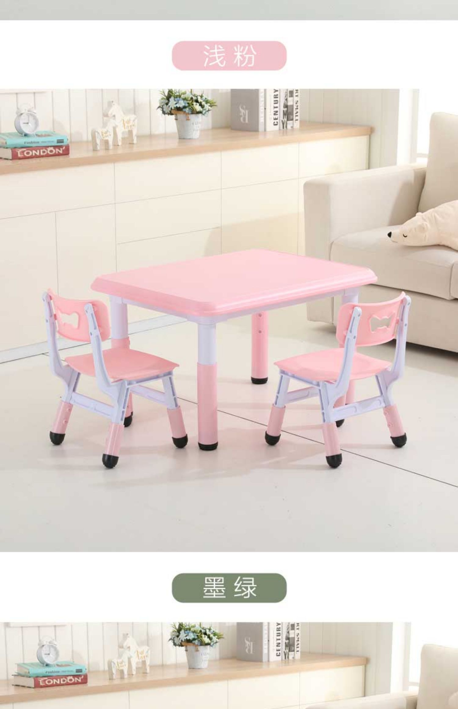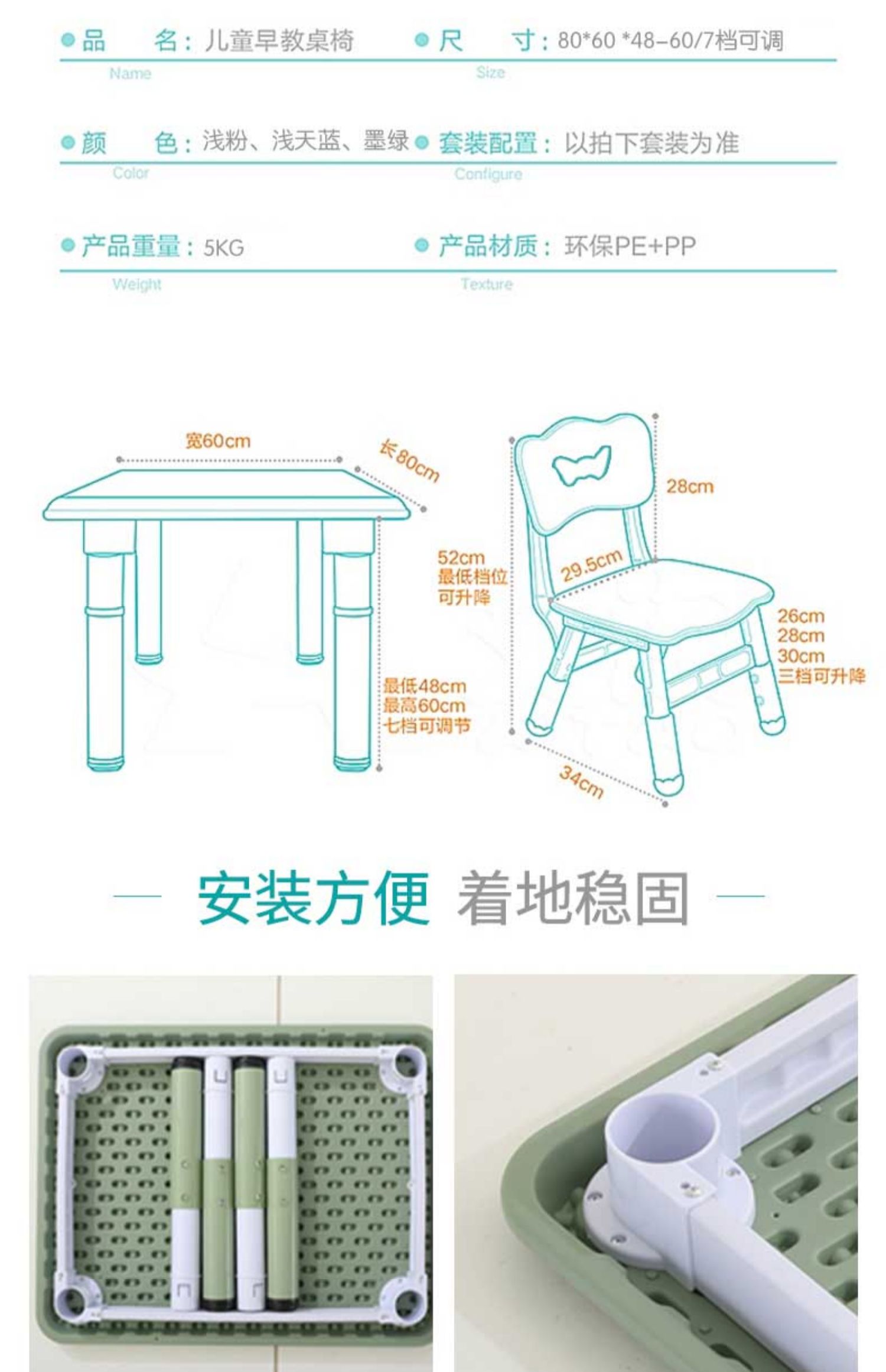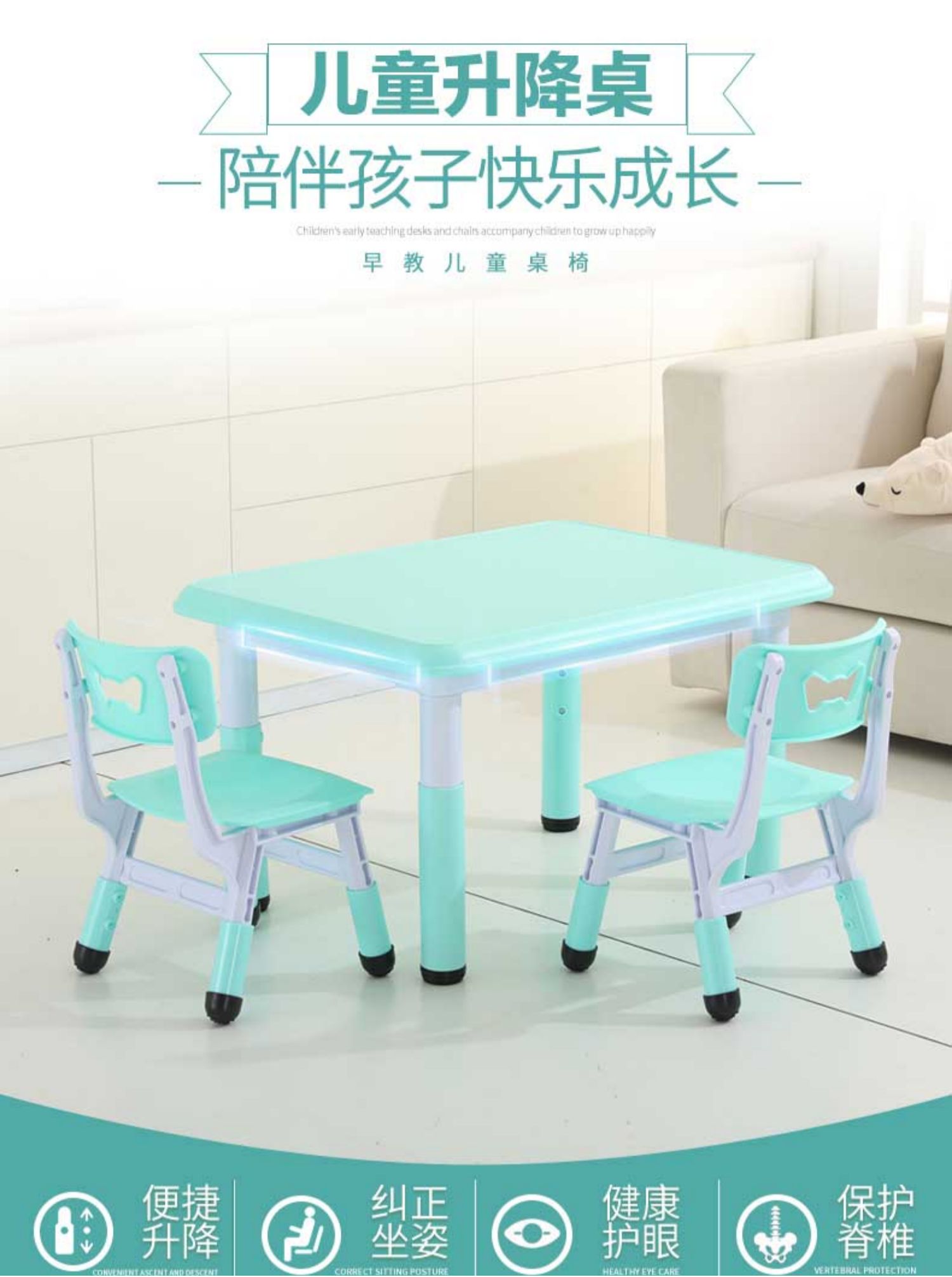 W6 어린이 테이블과 의자 세트 유치원 가정용 플라스틱 게임 테이블 아기 글쓰기를위한 테이블 리프팅 테이블스토어 가기