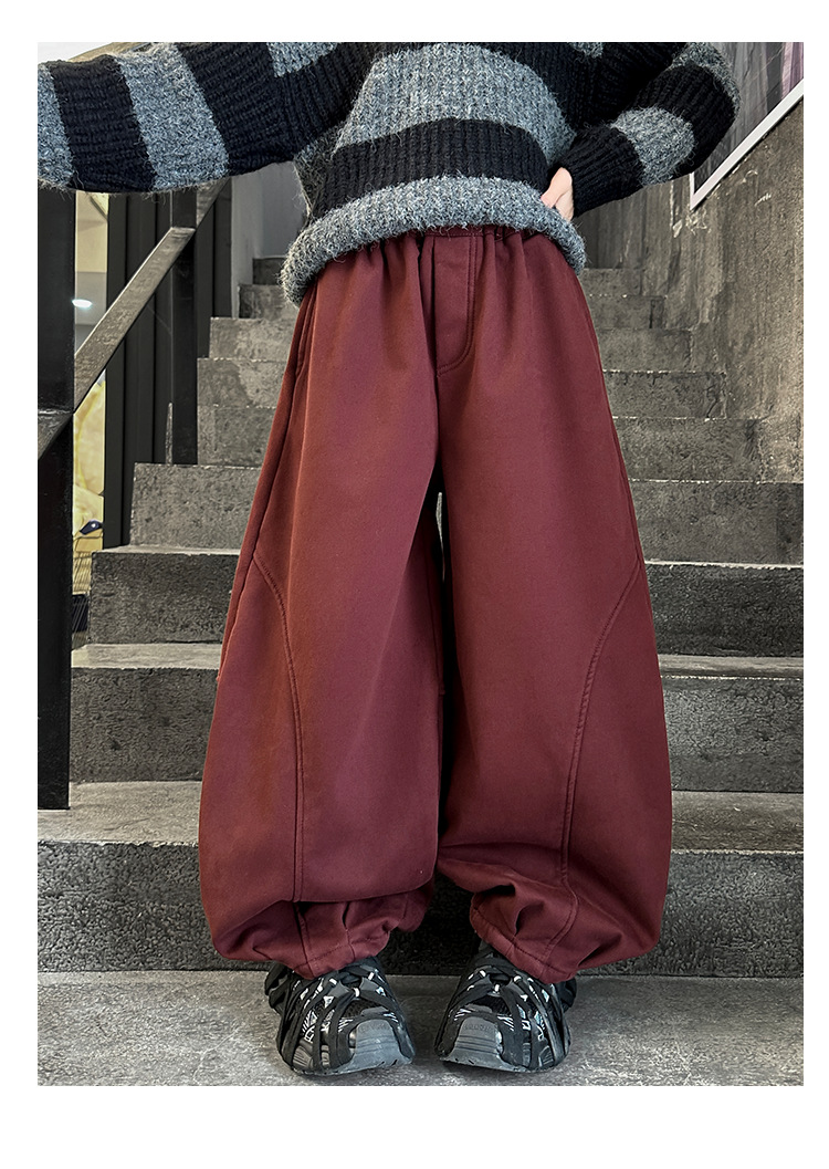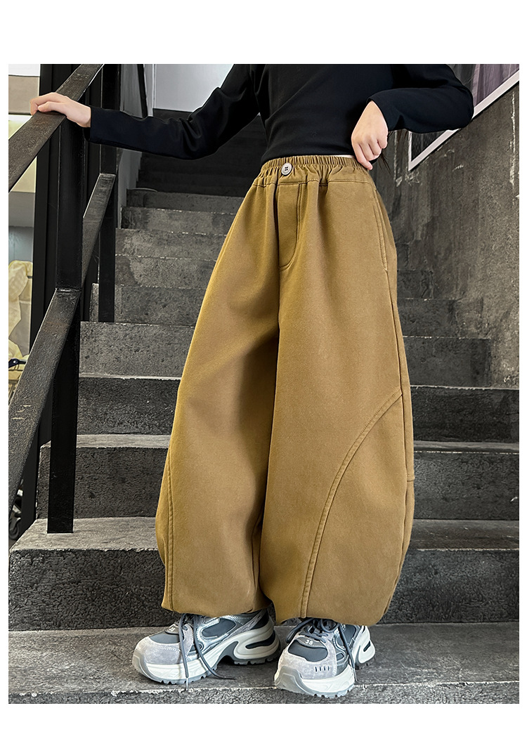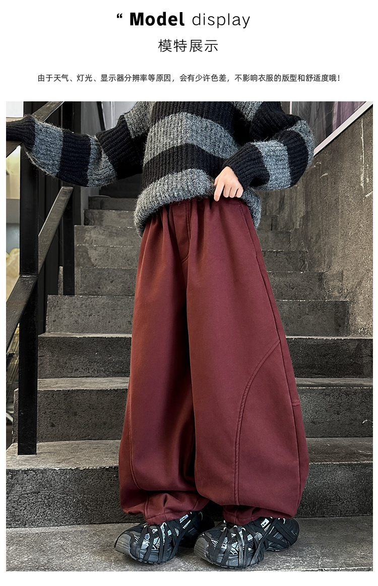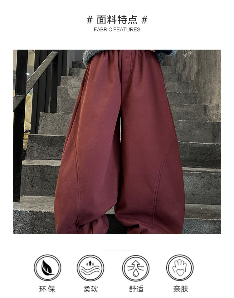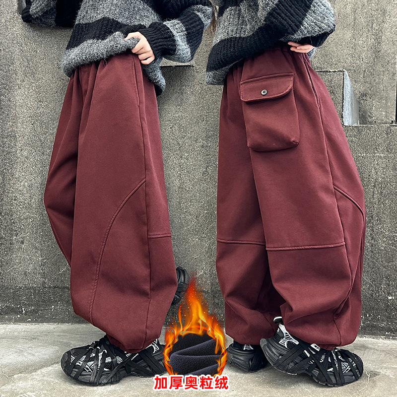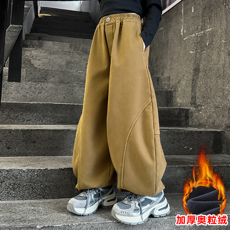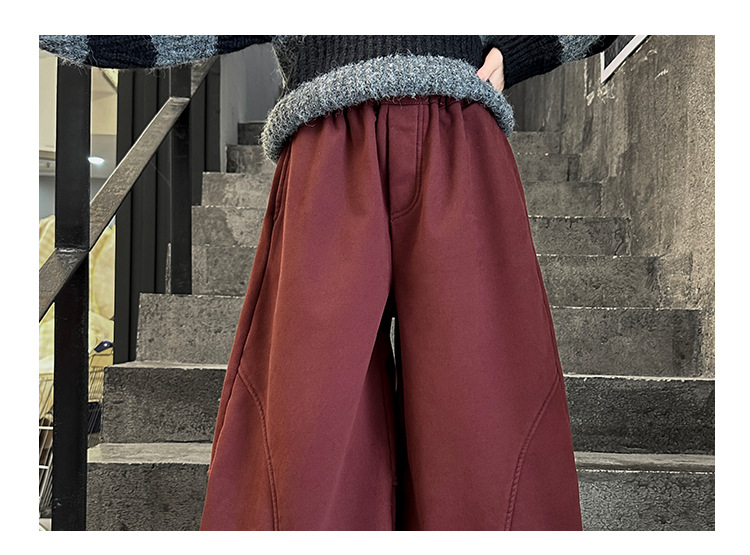 소녀의 큰 소년의 기모 면 넓은 다리 바지 가을 겨울 새 2024 소녀의 겨울 한 조각 양털 스트레이트 느슨한 긴 바지스토어 가기