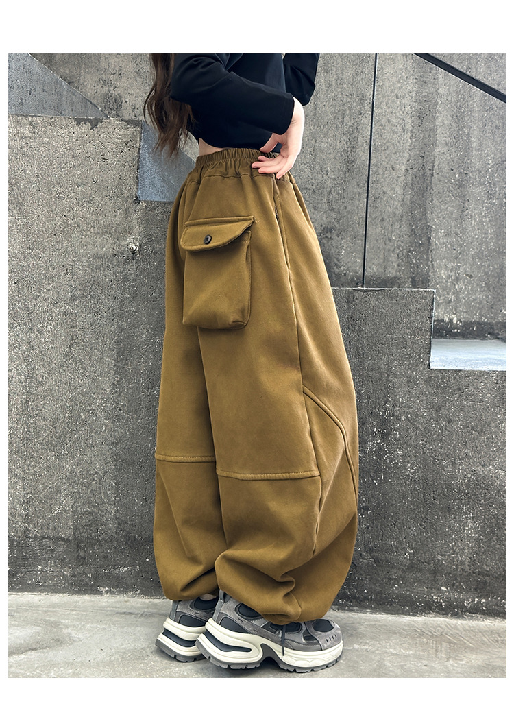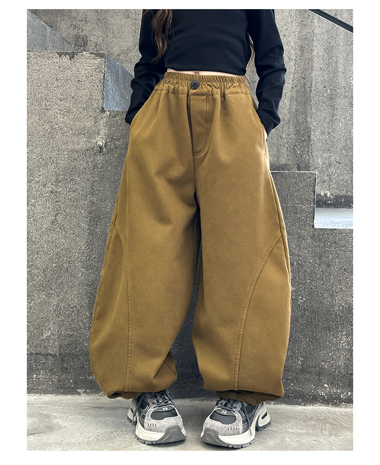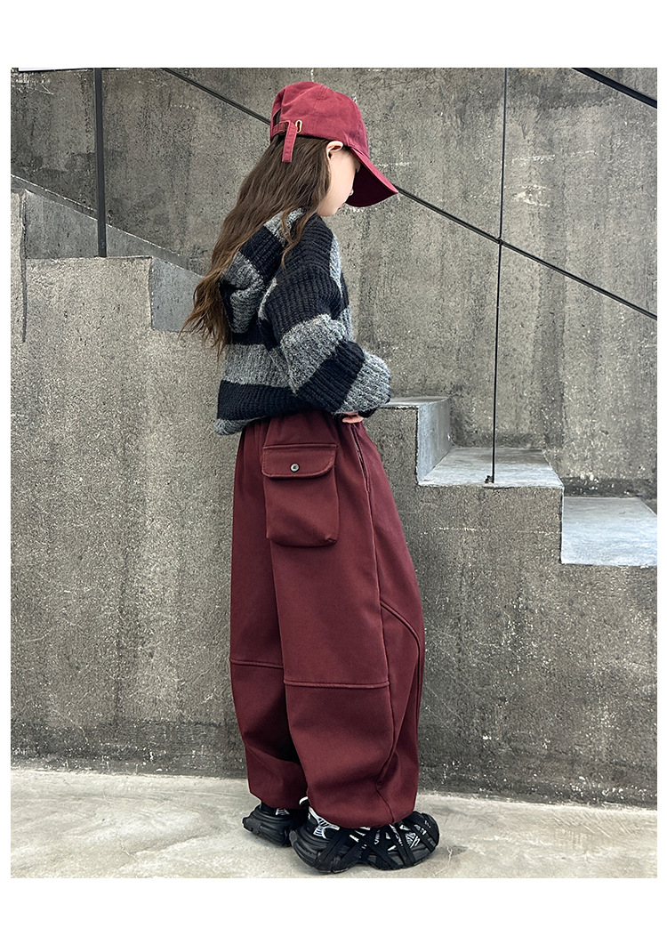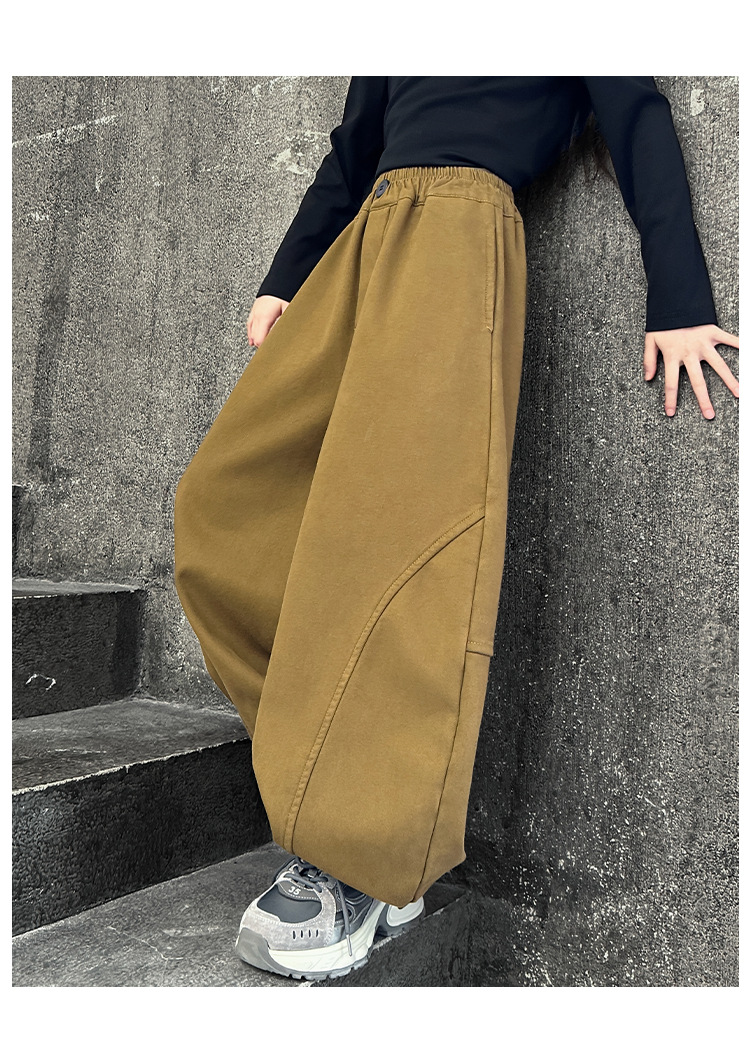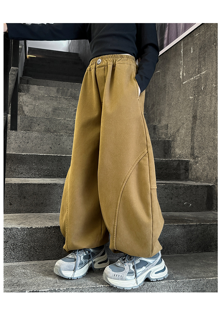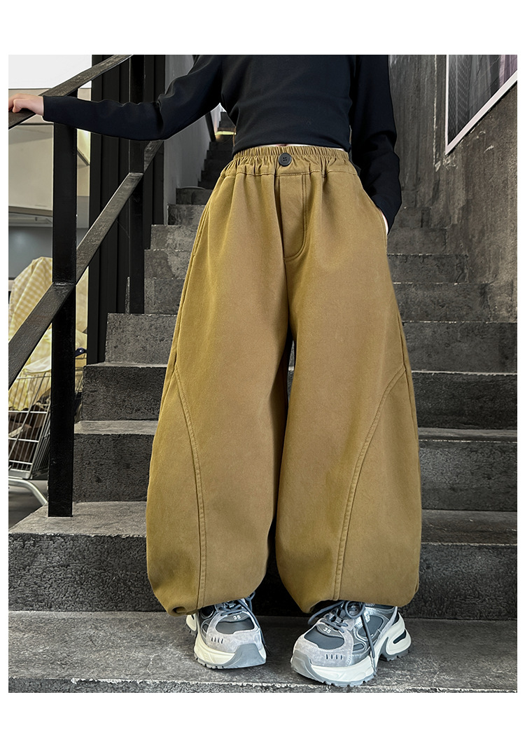 소녀의 큰 소년의 기모 면 넓은 다리 바지 가을 겨울 새 2024 소녀의 겨울 한 조각 양털 스트레이트 느슨한 긴 바지스토어 가기