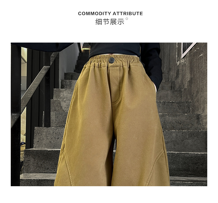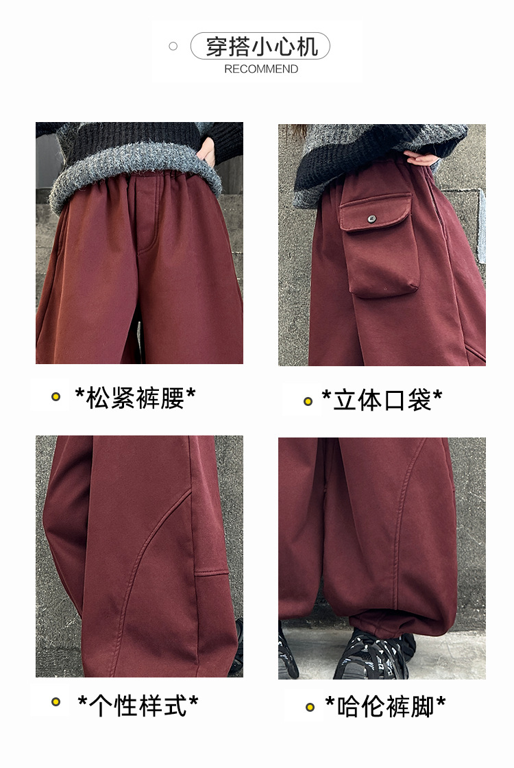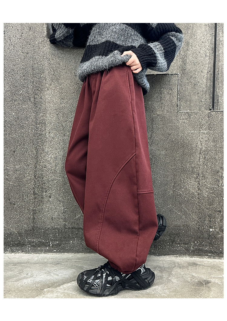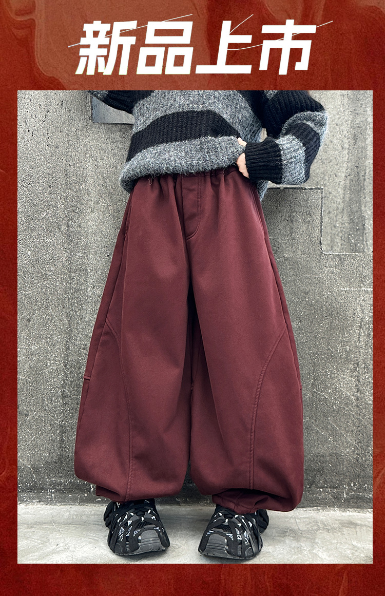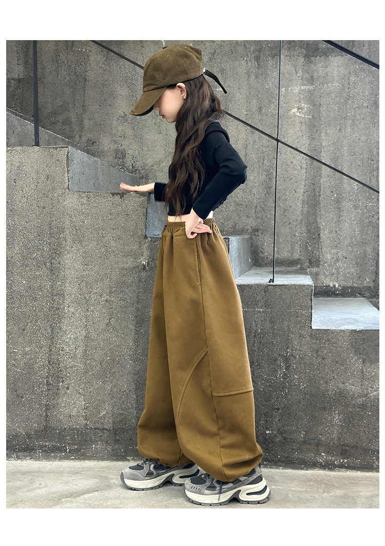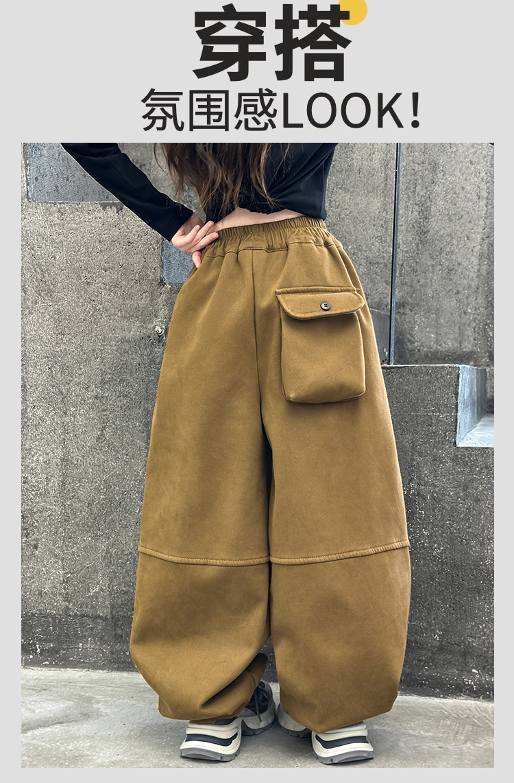 소녀의 큰 소년의 기모 면 넓은 다리 바지 가을 겨울 새 2024 소녀의 겨울 한 조각 양털 스트레이트 느슨한 긴 바지스토어 가기