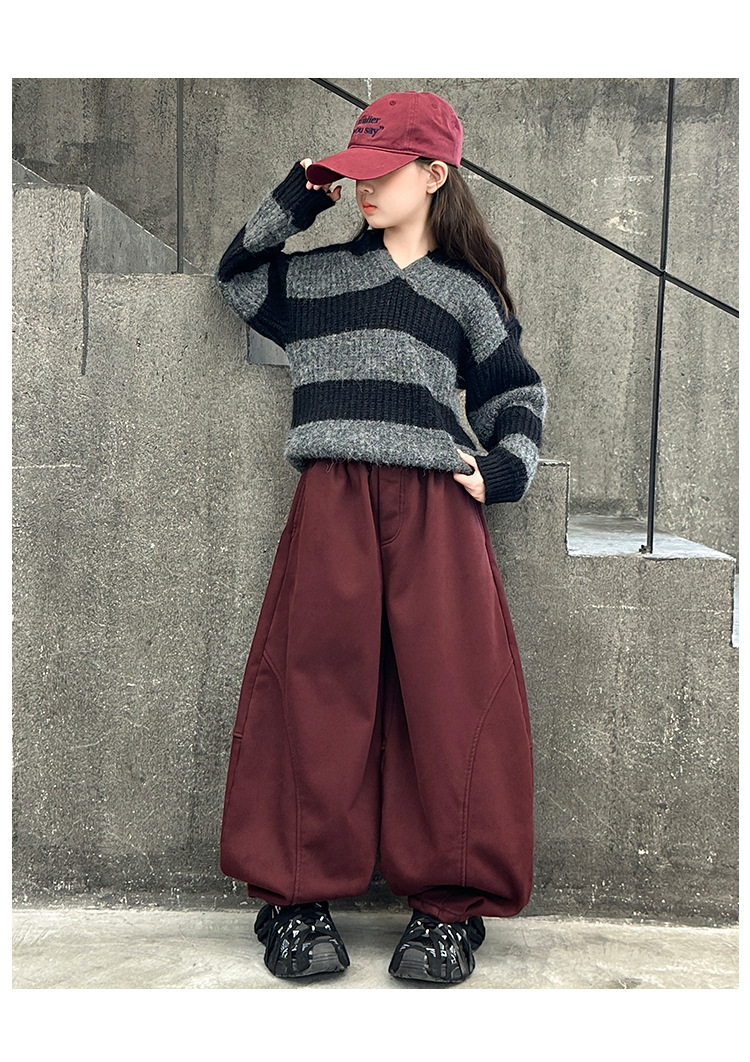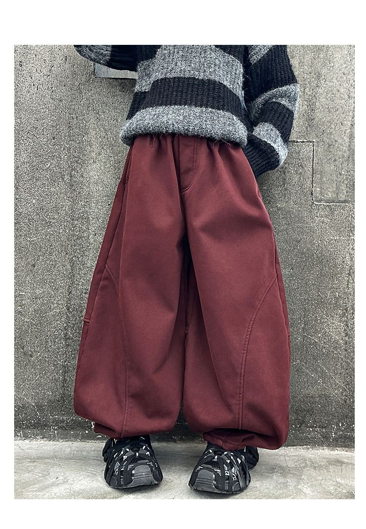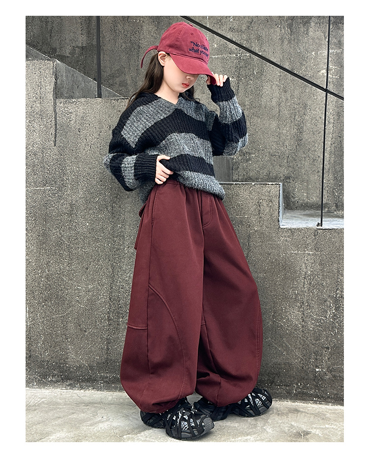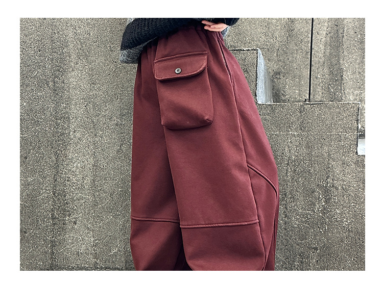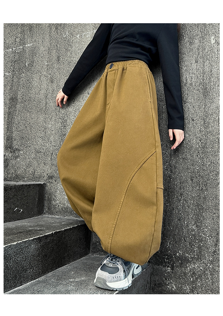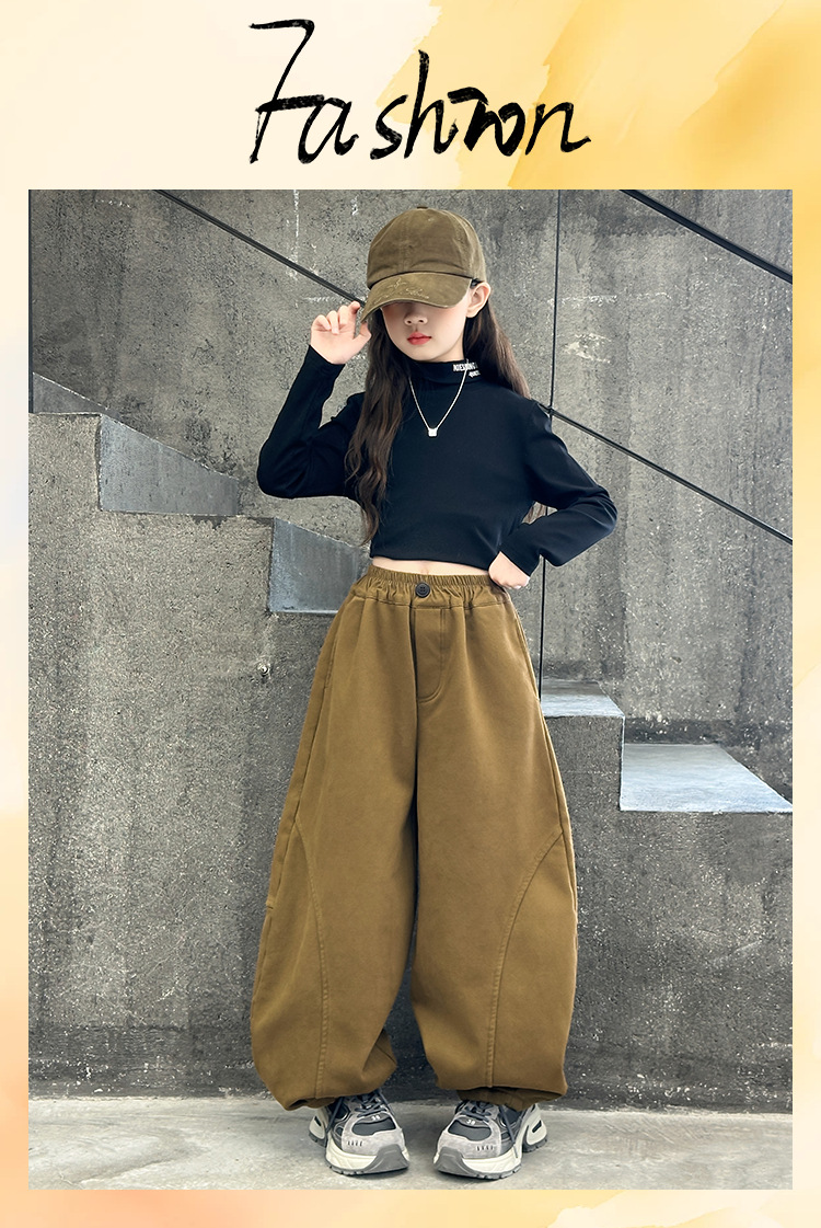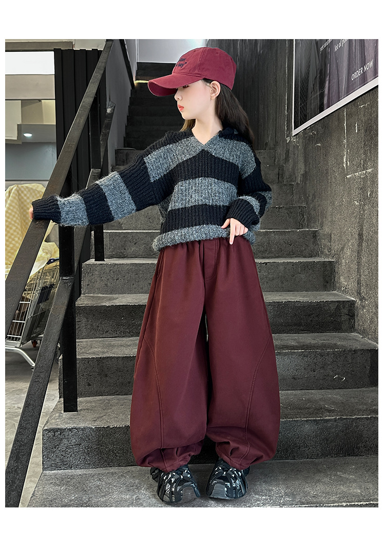 소녀의 큰 소년의 기모 면 넓은 다리 바지 가을 겨울 새 2024 소녀의 겨울 한 조각 양털 스트레이트 느슨한 긴 바지스토어 가기