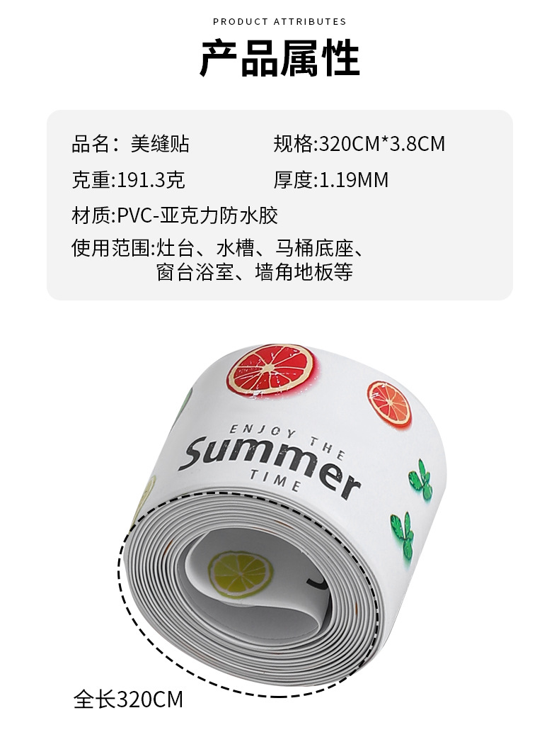 미국 바느질 스티커 방수 스티커 곰팡이 방지 주방 싱크대 쿠커 스티커 밀봉 가장자리 물 유지 스트립 확장 된 두꺼운 테이프