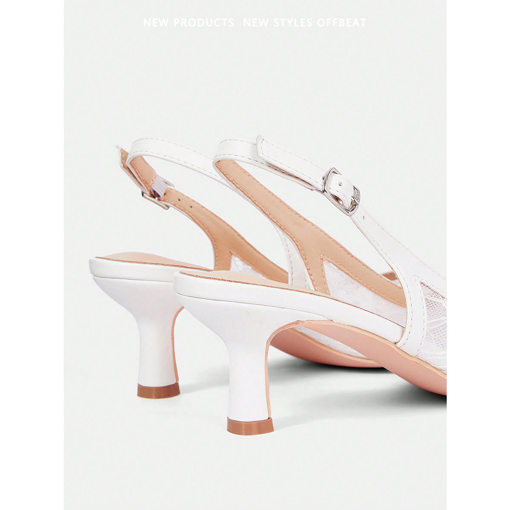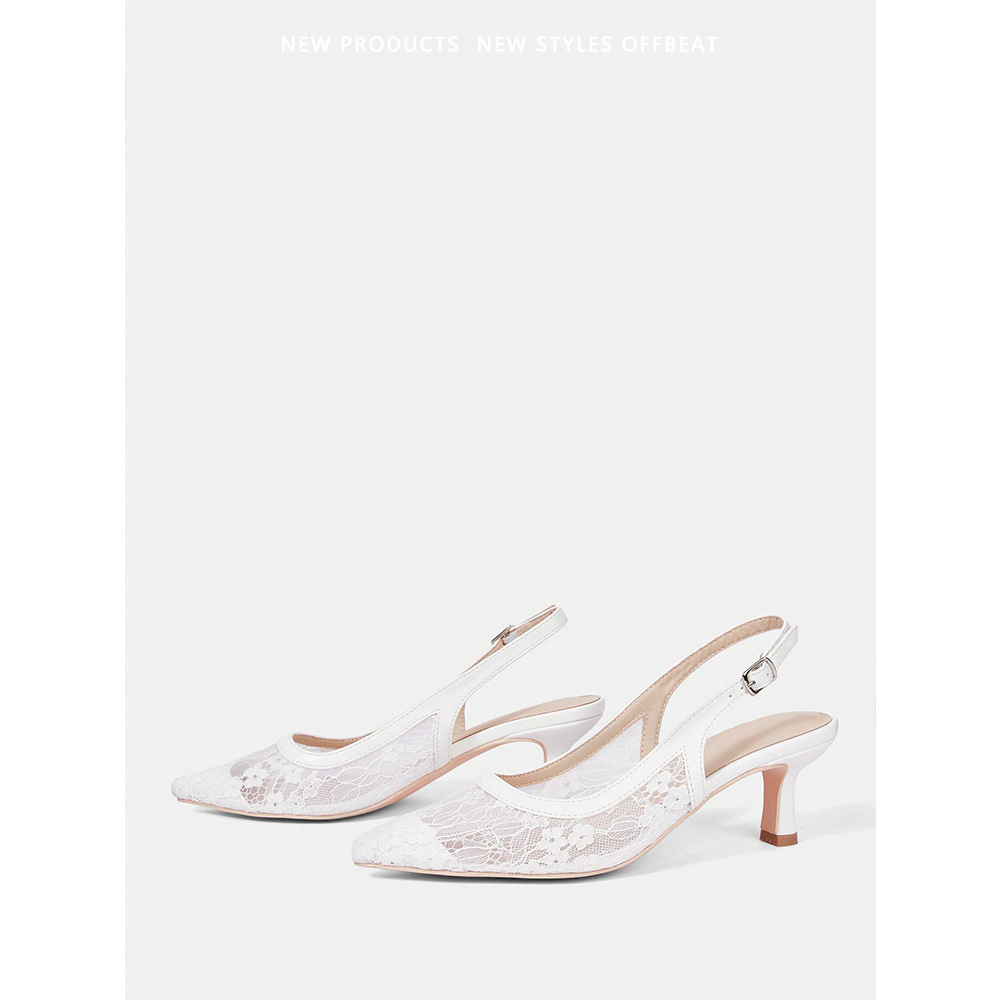 뾰족코 하이힐 여성용 얇은 굽 메쉬 소재 대외 무역 큰 사이즈 앞코가 덮인 샌들 키튼힐 낮은 굽 단화 편안함스토어 가기