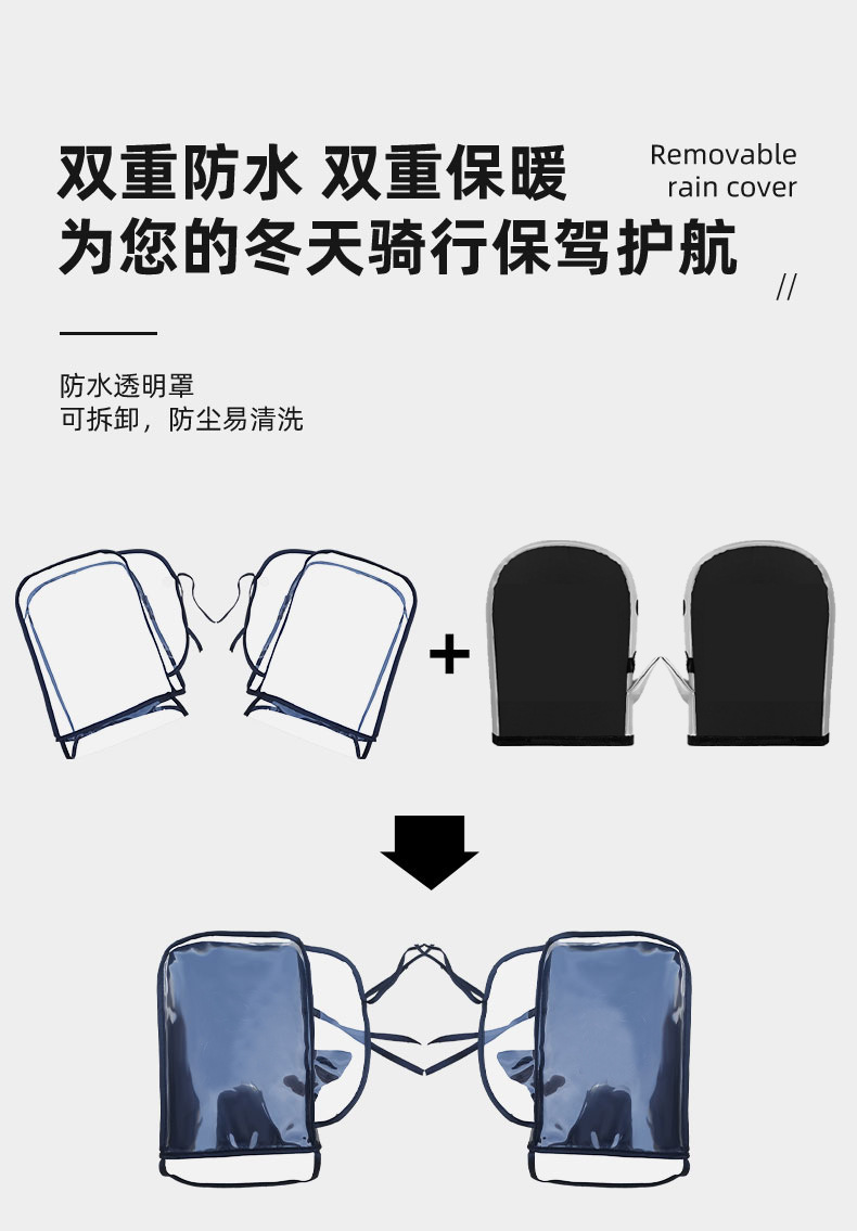 • 퓨어 블랙 - 짧은 스타일 [벨벳 장갑 2개 + 레인 커버 2개] 따뜻하고 폭우로부터 보호
