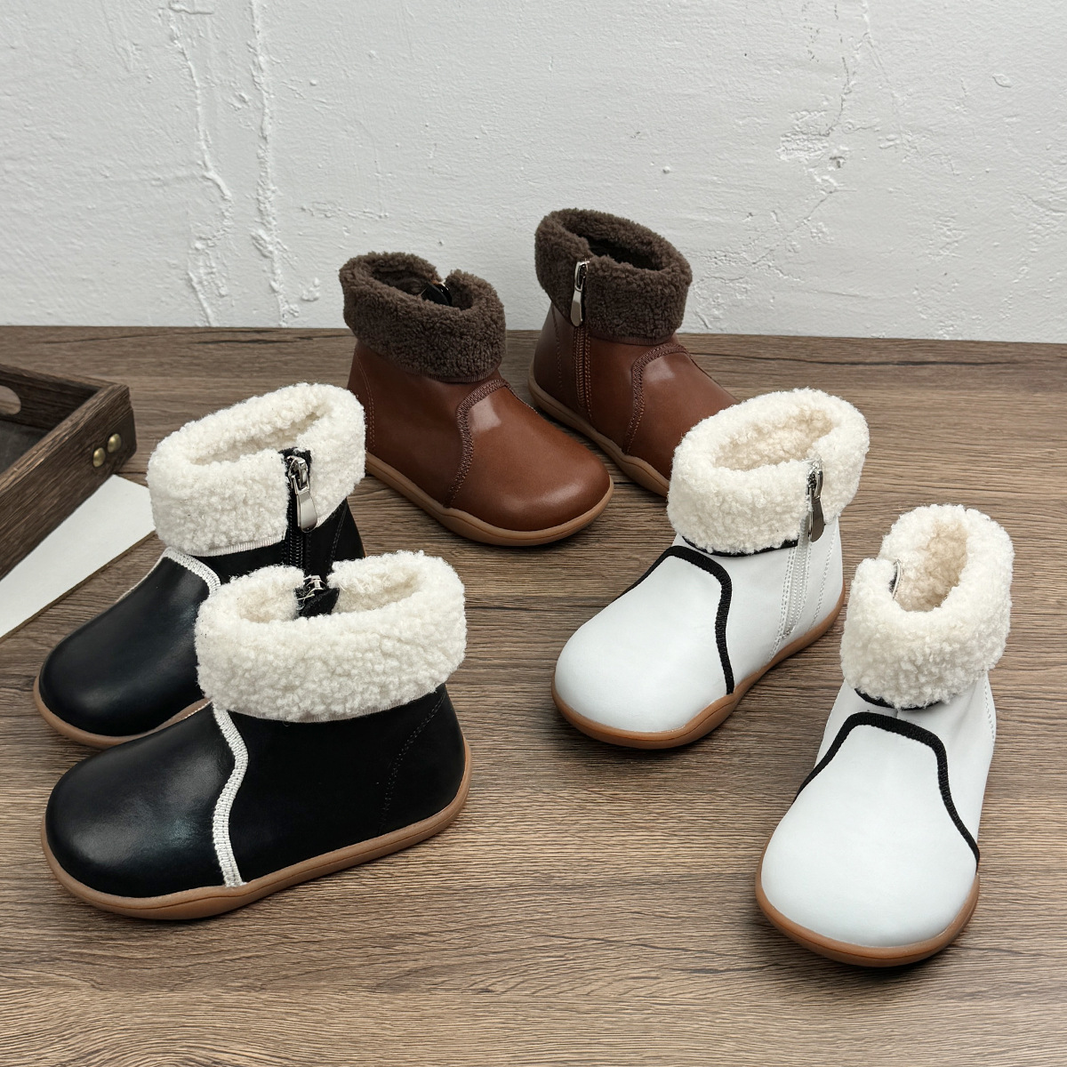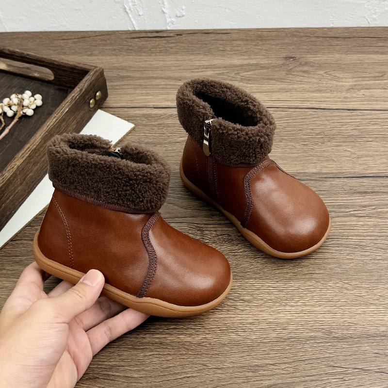 어린이 정품 가죽 짧은 부츠 소녀 부드러운 밑창 가죽 부츠 겨울 새로운 아기 간단한 올 매치 부츠 소년 마틴 부츠 가을