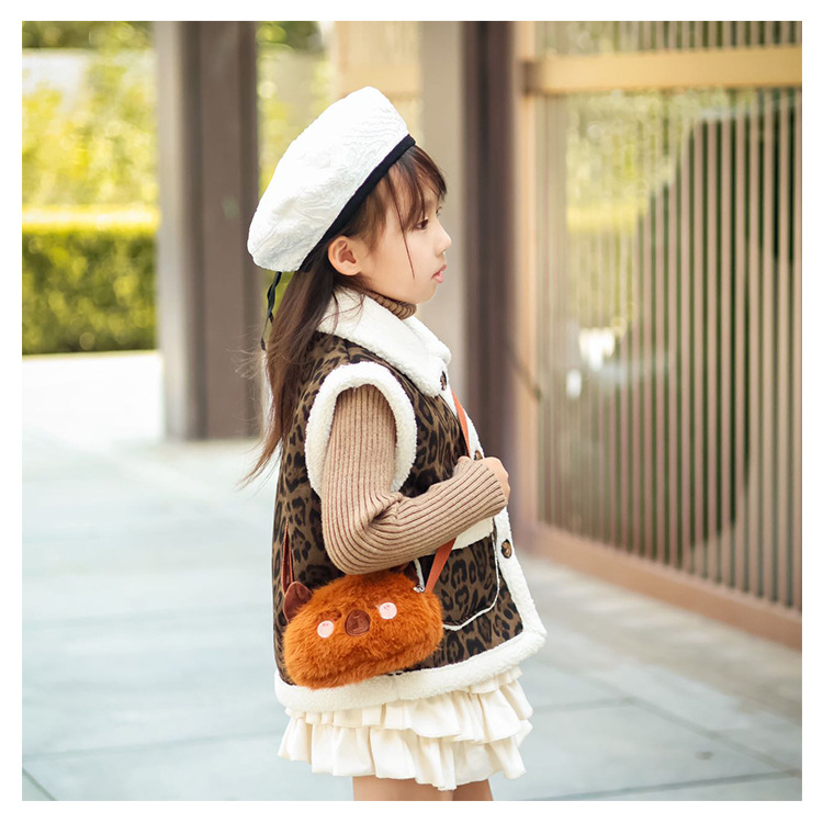 가을과 겨울 새로운 어린이 동전 지갑 소년과 소녀 귀여운 만화 미니 봉제 가방 야외 크로스 바디 가방 어깨 가방